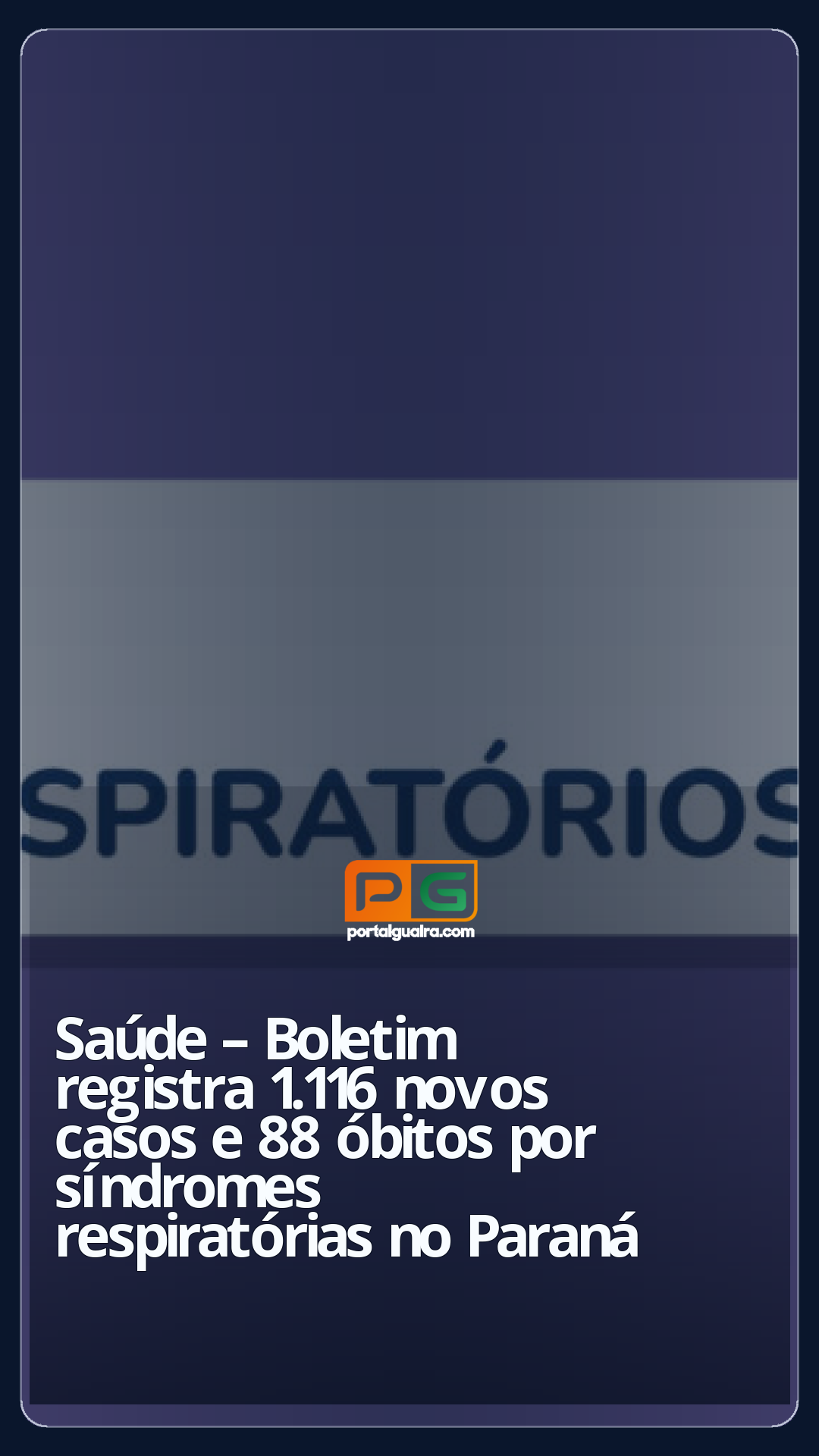 A Secretaria de Estado da Saúde (Sesa) divulgou na quarta-feira (2) o novo Informe Epidemiológico com dados atualizados sobre os vírus respiratórios que circulam no Paraná. O boletim apresenta um panorama geral da situação no Estado com o objetivo de reforçar a vigilância e o monitoramento da Síndrome Gripal (SG) e da Síndrome Respiratória Aguda Grave (SRAG).