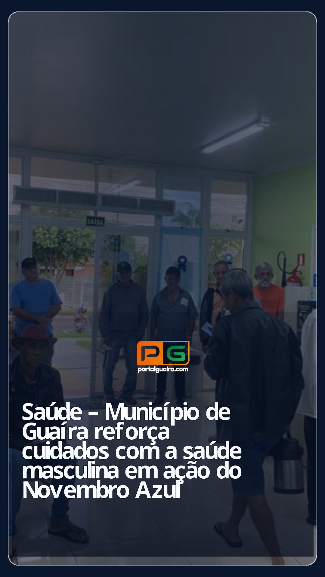 O Município de Guaíra, por meio da Secretaria Municipal de Saúde, promoveu no sábado, 8 de novembro, uma ampla mobilização voltada à saúde do homem, em alusão à campanha Novembro Azul. Todas as Unidades de Saúde da Família (USFs) participaram da ação, que teve como destaque a coleta do exame PSA – Antígeno Prostático Específico.