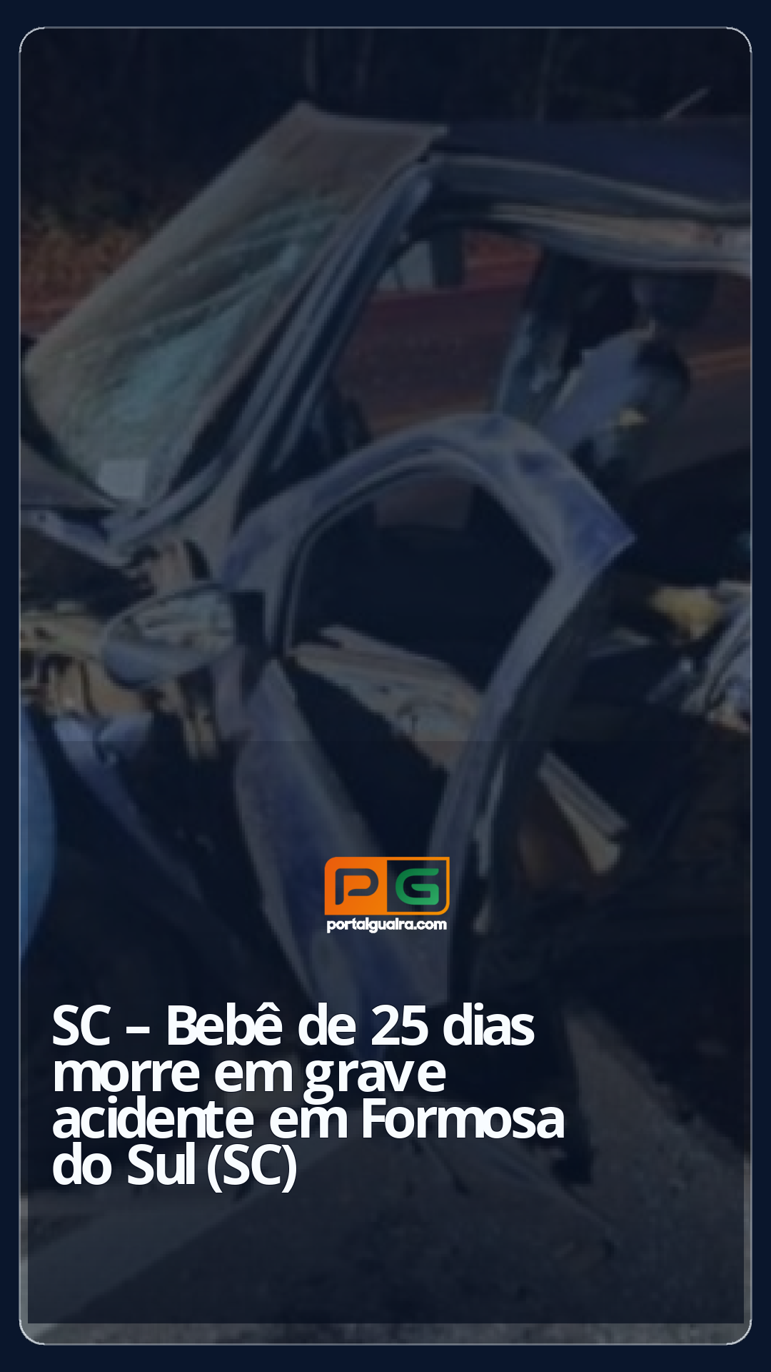 Um bebê de 25 dias morreu após grave acidente na SC-157, em Formosa do Sul (SC), na madrugada de domingo (2). A colisão frontal envolveu um Ford Fiesta e um Fiat Palio.