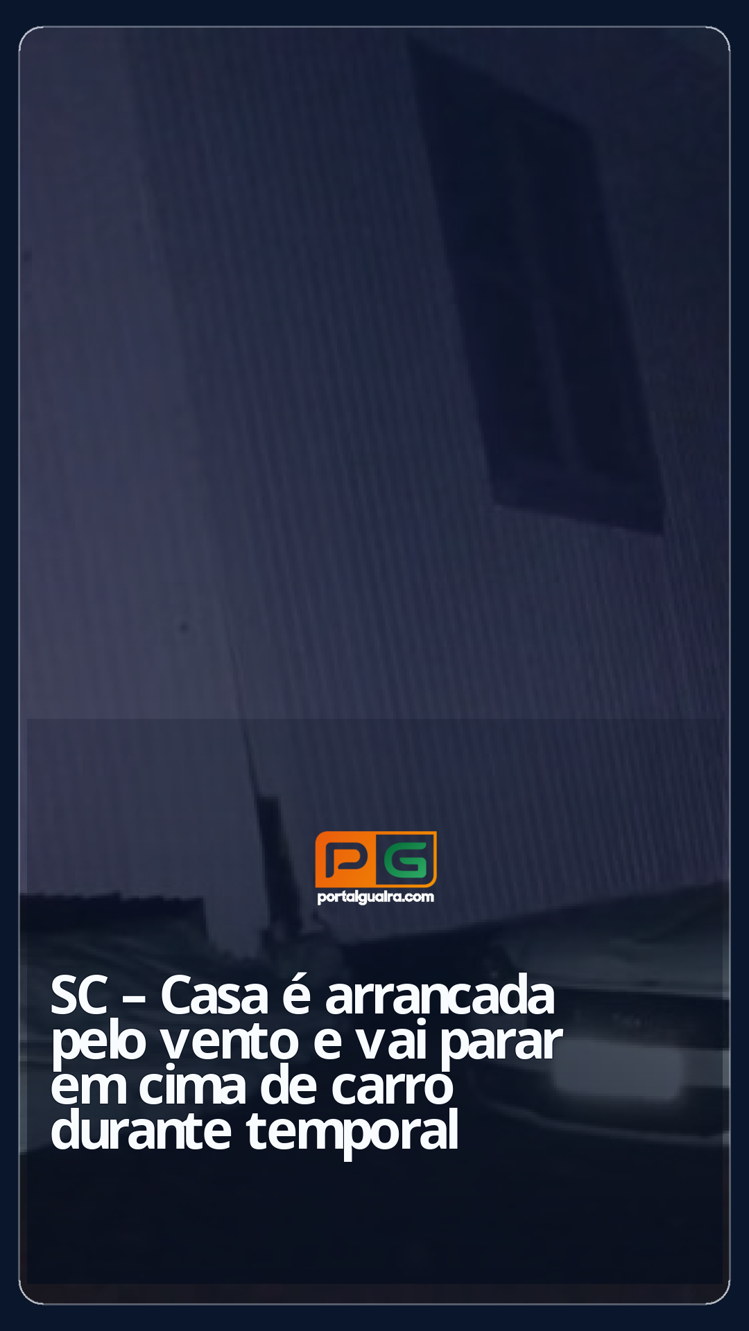Uma casa de madeira foi parar em cima de um carro após ser arrancada pela força do vento em Barra Bonita, no Oeste de Santa Catarina, na noite de sábado (20). Segundo a Defesa Civil, os moradores não estavam no local e ninguém ficou ferido.