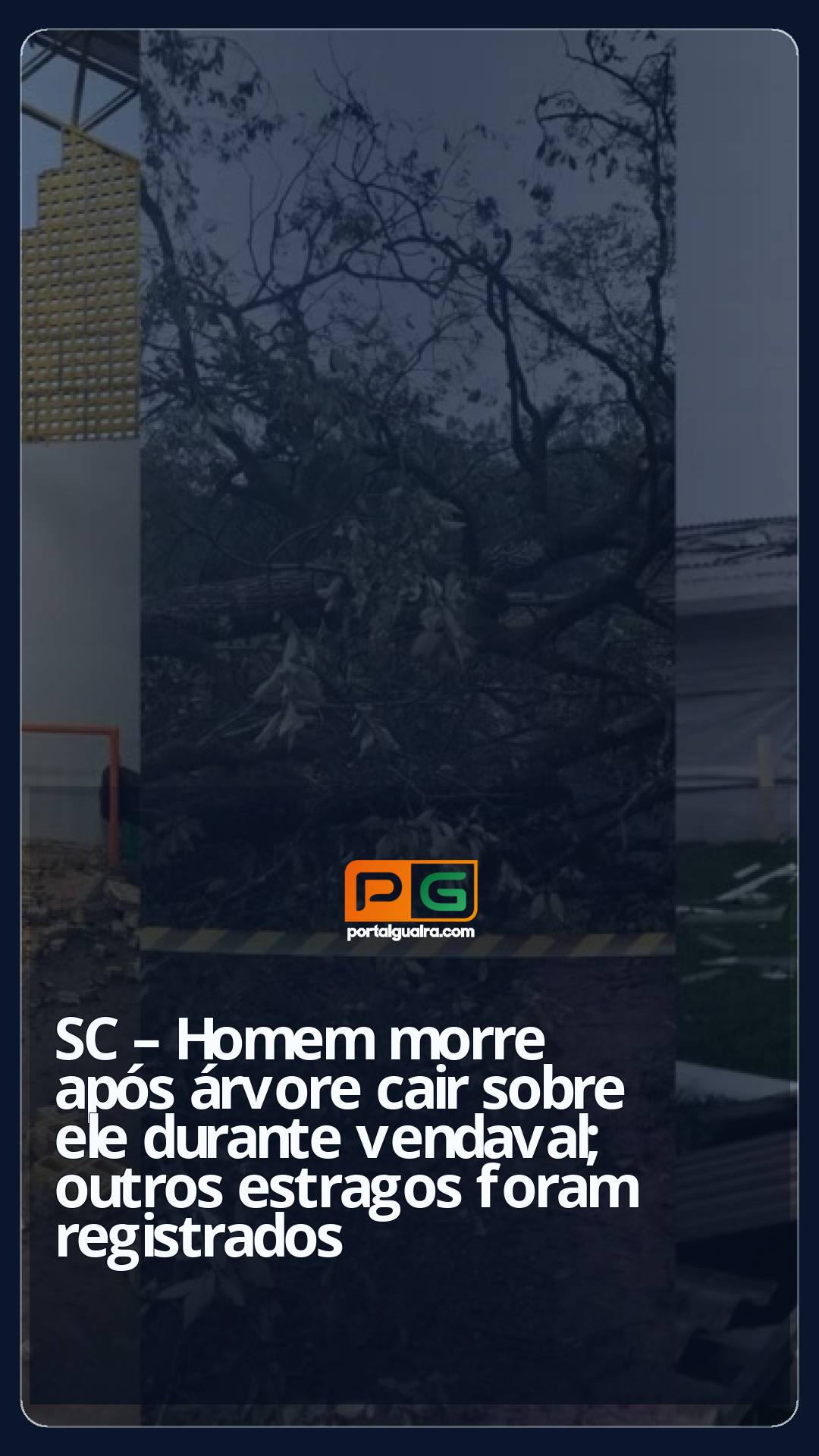 A morte ocorreu em Palmitos, a cerca de 617 quilômetros de Florianópolis, durante um vendaval, de acordo com os bombeiros. A identidade da vítima não havia sido divulgada até a última atualização da reportagem.