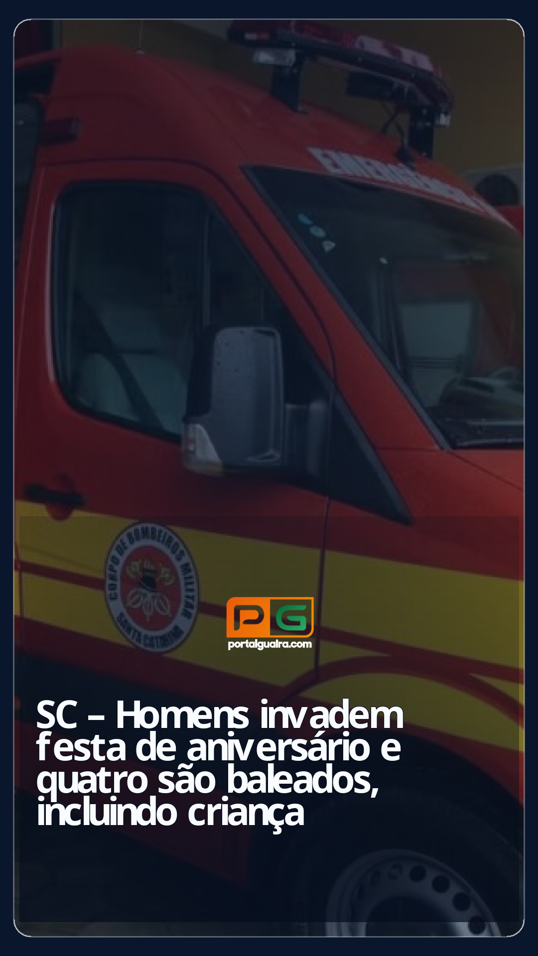Três homens e uma criança de 6 anos foram baleados em Videira, no Oeste de Santa Catarina, na noite de sábado (8), após dois homens invadirem uma festa de aniversário. Os feridos foram levados ao hospital, de acordo com o Corpo de Bombeiros Militar.