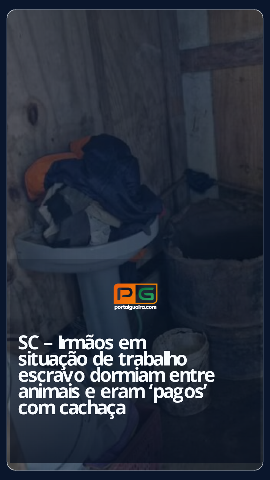 Sobre o barraco onde viviam, os fiscais encontraram um banheiro improvisado, sem condições de habitação. O espaço era o mesmo das estrebarias de bezerros e ovelhas da propriedade. Os dois irmãos e os animais eram divididos apenas por ripas de madeira. Ao lado, também havia um estábulo de porcos.