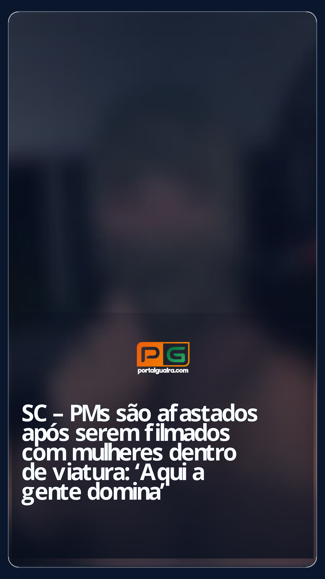 Dois policiais militares em serviço foram flagrados em vídeos levando duas mulheres dentro de uma viatura por ruas de Florianópolis em alta velocidade. As imagens foram feitas por uma delas e mostram os agentes públicos com armas conversando e rindo durante o passeio. Em um momento, uma delas chega a usar a balaclava da PM.