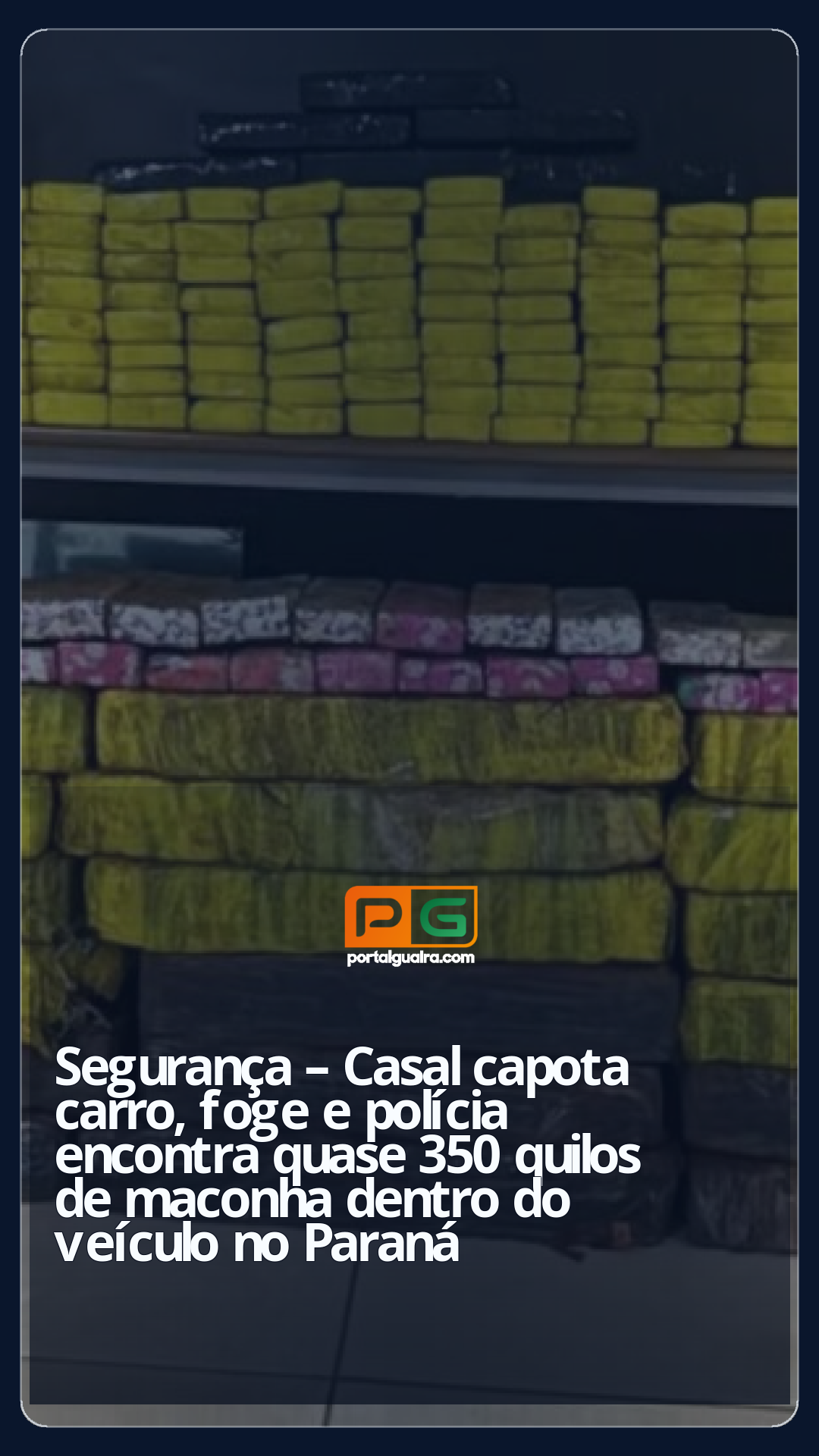 Um casal que estava conduzindo o veículo, fugiu após o acidente e até o momento não foi localizado. Os policiais encontraram dentro do carro quase 350 quilos de maconha.