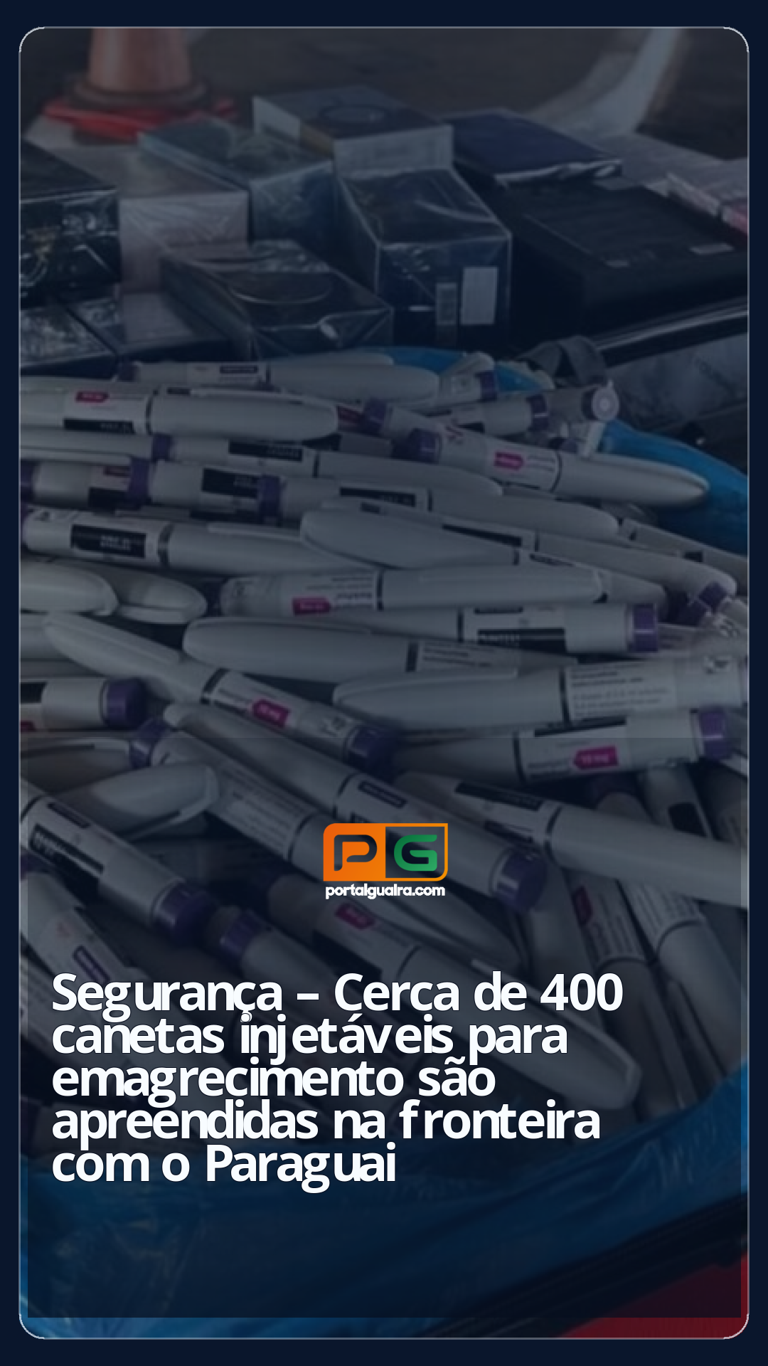 A Receita Federal e a Polícia Federal (PF) apreenderam, na tarde de quarta-feira (18), cerca de 400 canetas injetáveis utilizadas para emagrecimento na Ponte Internacional da Amizade, que liga o Brasil ao Paraguai.