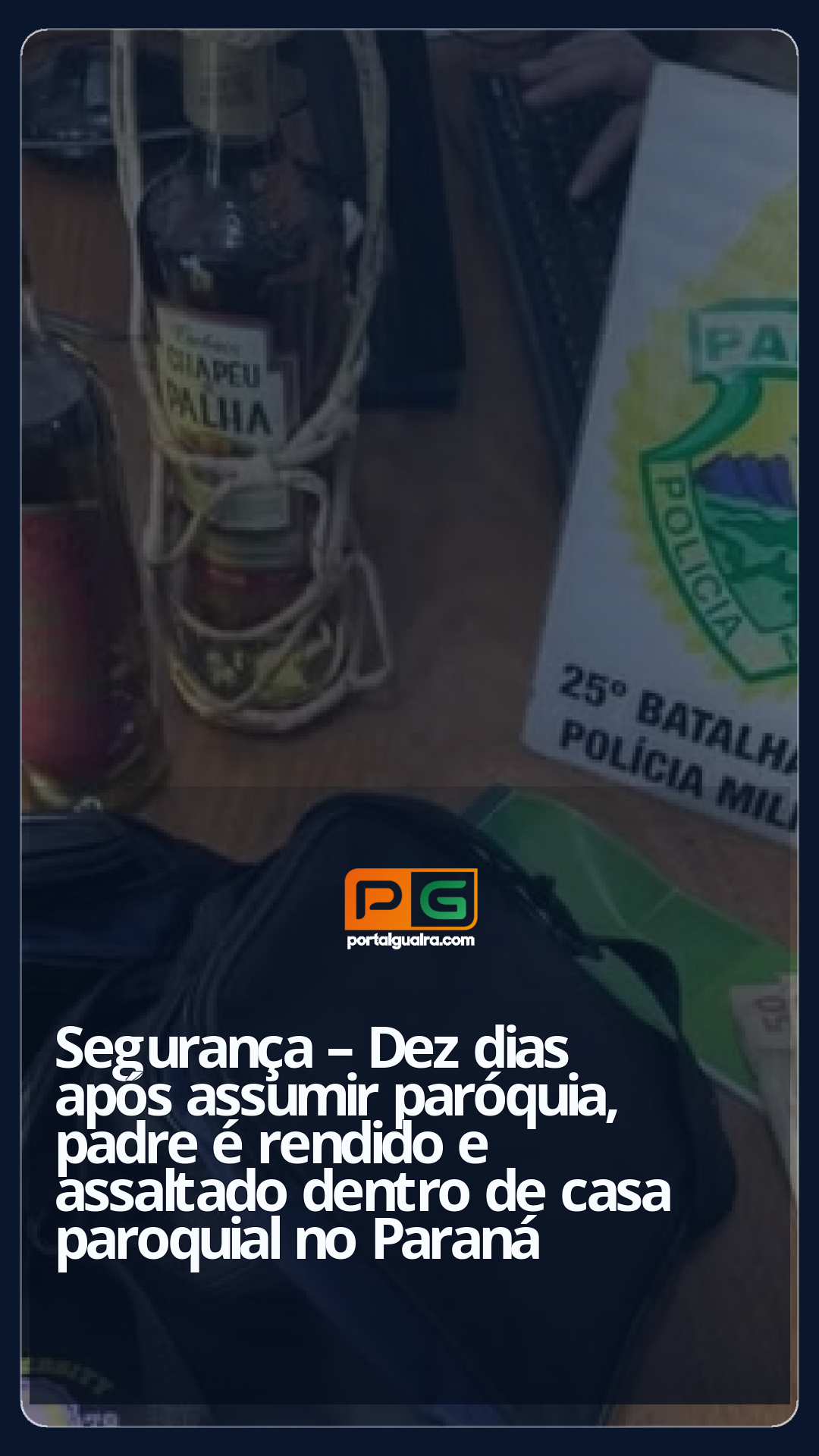 Um padre, de 61 anos, foi assaltado e rendido por dois homens dentro de uma casa paroquial, na manhã de quarta-feira (29), em Perobal no noroeste do Paraná. Os assaltantes, de 31 e 41 anos, foram presos pela Polícia Militar (PM) e com eles foram encontrados objetos roubados na casa.