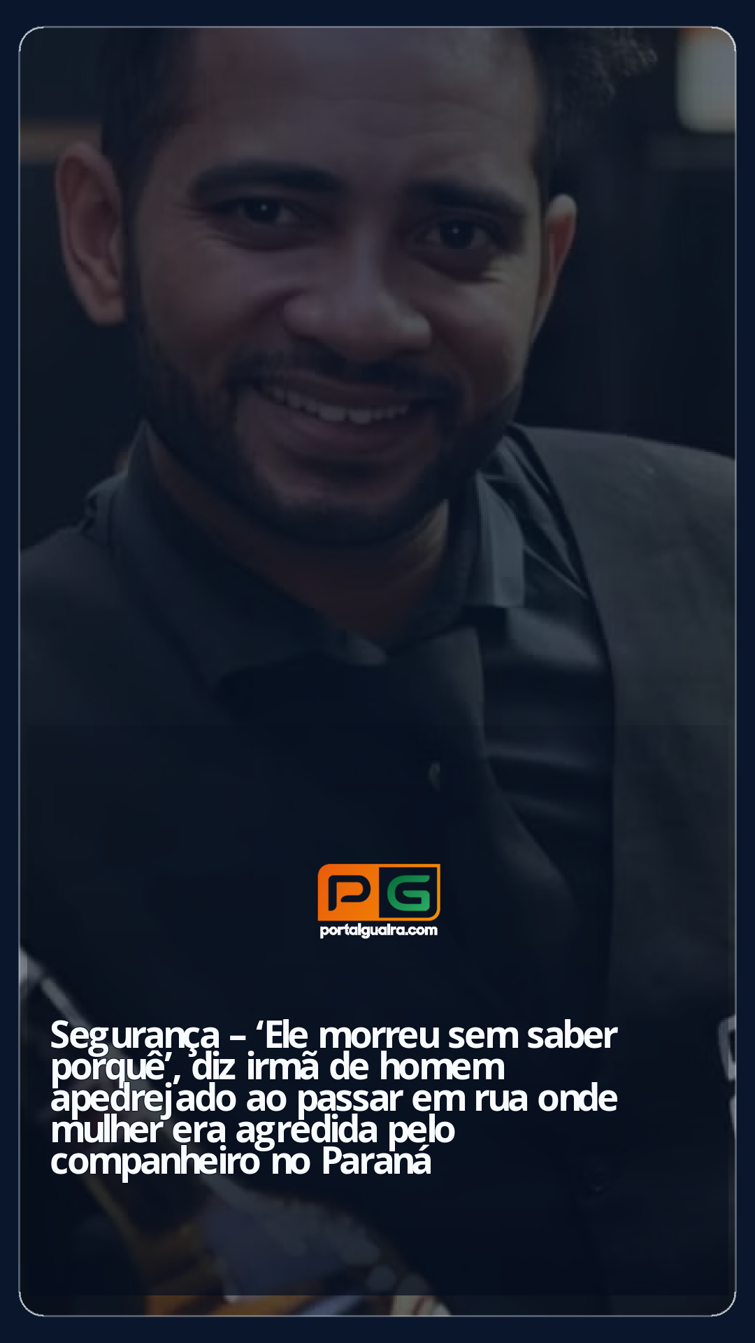 Jhonathan Maicon Antônio da Silva, de 31 anos, foi apedrejado e morto ao passar pela rua onde um homem estava agredindo a companheira, em Maringá, no norte do Paraná. Ketlen Bianca, irmã da vítima, disse em entrevista à RPC que “ele morreu sem saber porquê”.