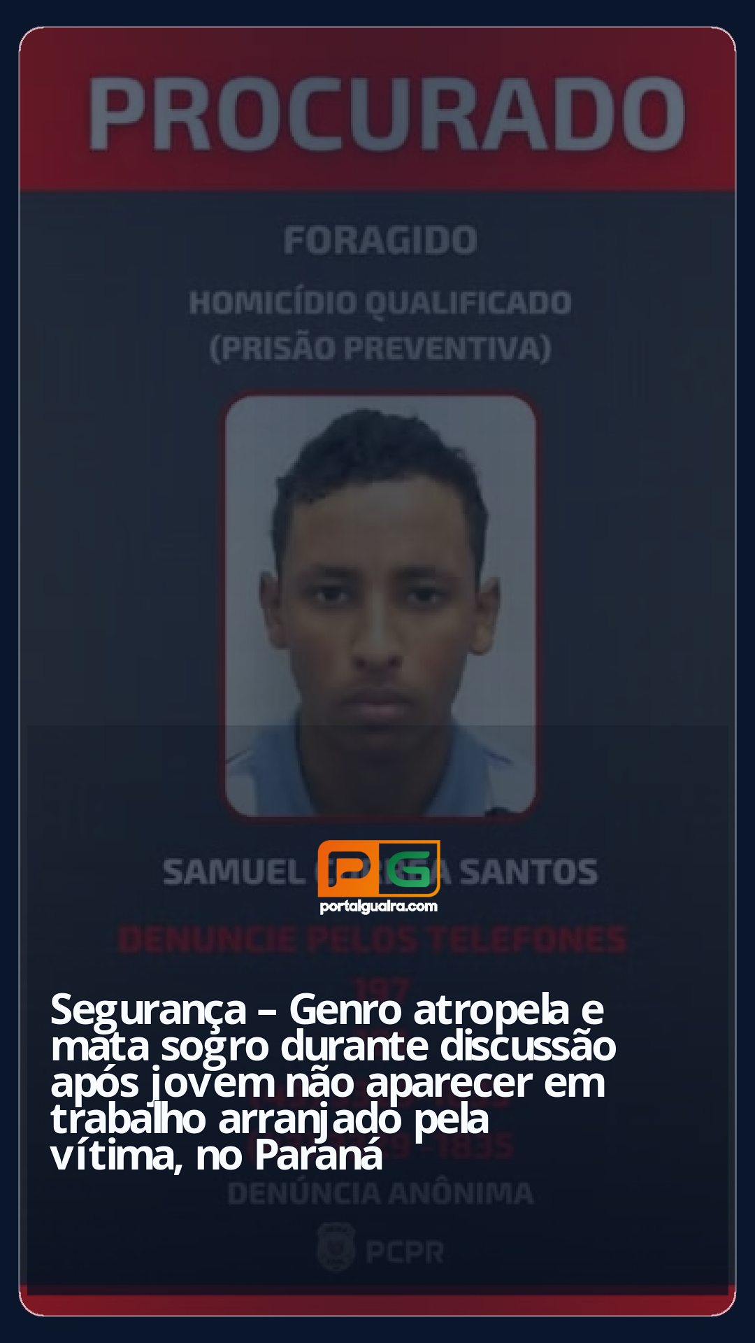 Um homem de 22 anos fugiu após atropelar e matar o sogro, José Luiz Paio Junior, de 40 anos. O crime aconteceu no sábado (6), em Londrina, no norte do Paraná.