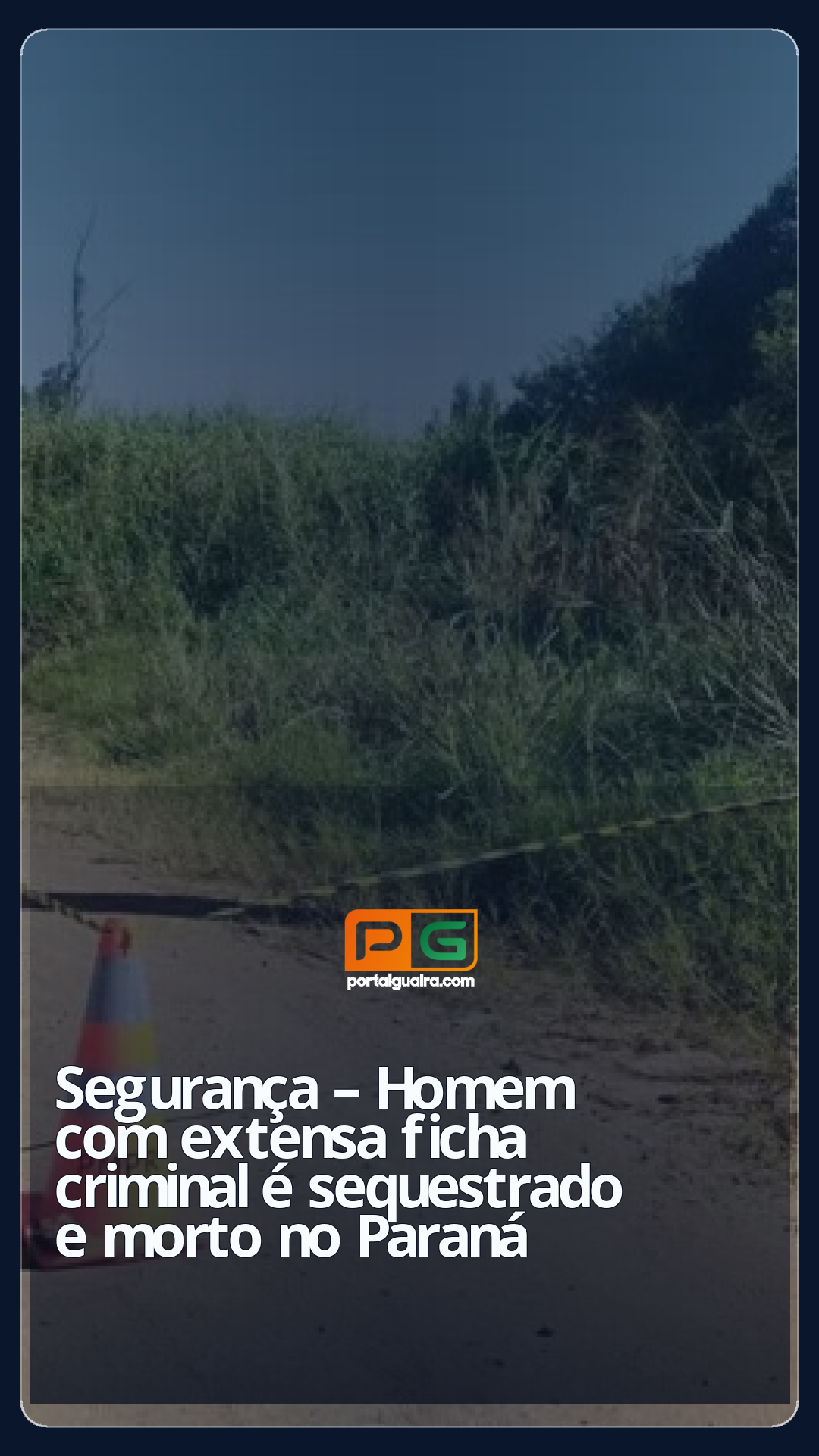 Um homem de 26 anos com uma longa ficha criminal foi sequestrado e morto em Cianorte, no noroeste do Paraná, na madrugada do último sábado (24). Ele foi identificado pela polícia como Danilo Caldeira Teixeira.