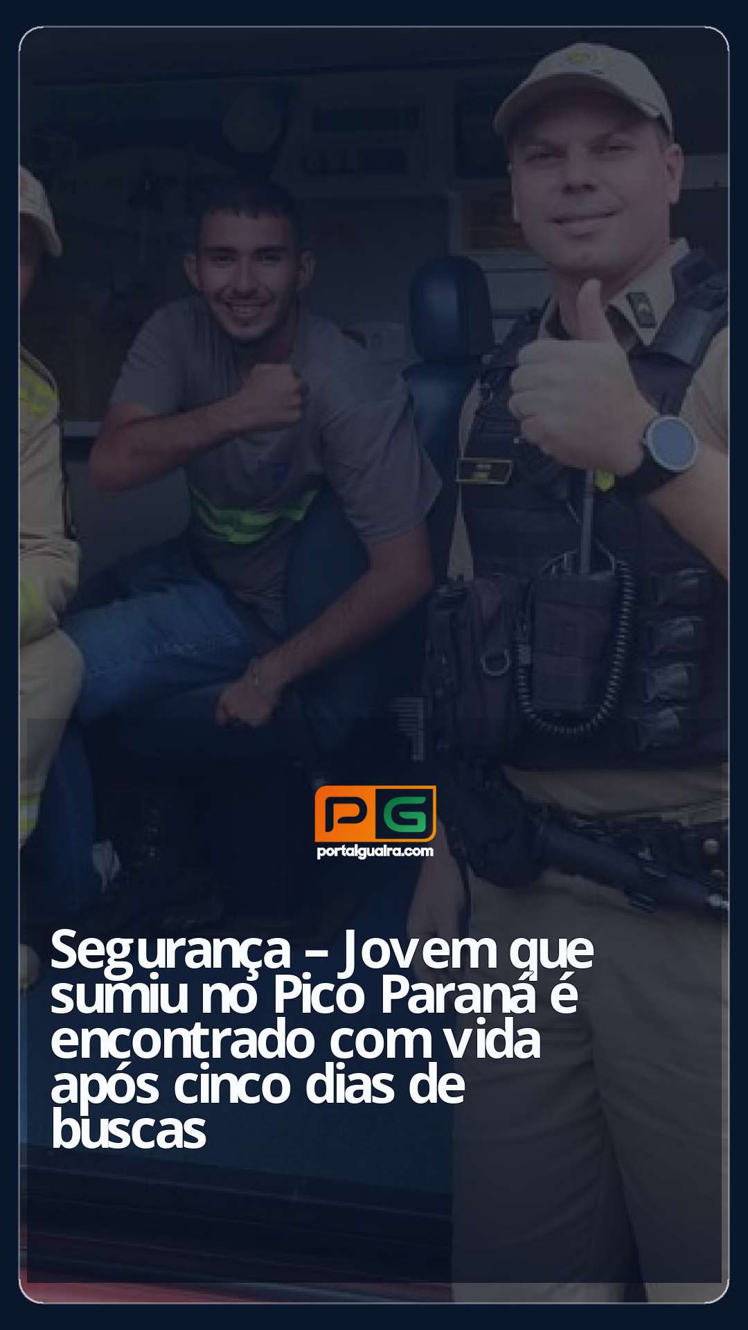 Um jovem de 20 anos que estava desaparecido no Pico Paraná desde o dia 1º de janeiro foi encontrado com vida na manhã de segunda-feira (5) após uma operação de buscas que mobilizou equipes especializadas do Corpo de Bombeiros Militar do Paraná (CBMPR) e contou com o apoio de diversos voluntários.