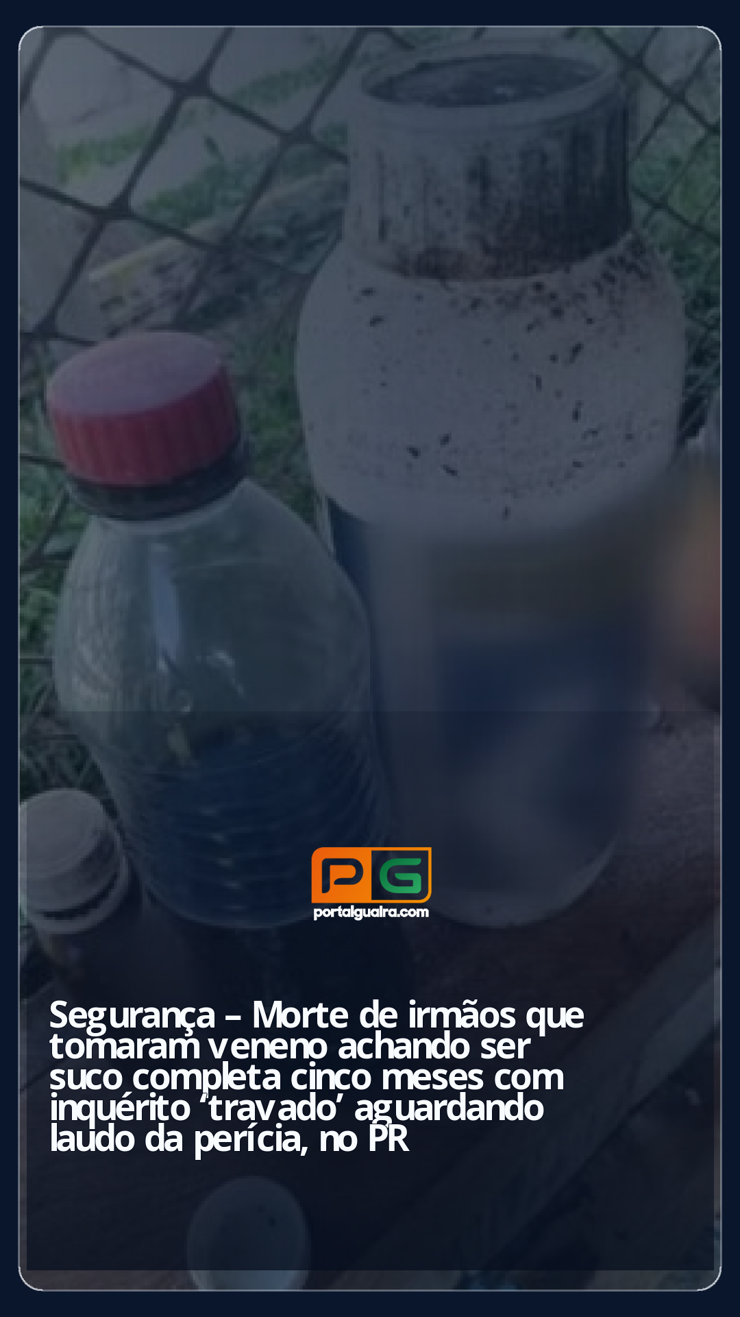 A Polícia Civil do Paraná (PC-PR) aguarda o resultado de laudos periciais da Polícia Científica do estado para finalizar o inquérito sobre os irmãos que morreram após tomarem veneno de uso agropecuário que estava guardado em uma garrafa plástica transparente e não rotulada em Sengés, nos Campos Gerais do Paraná.