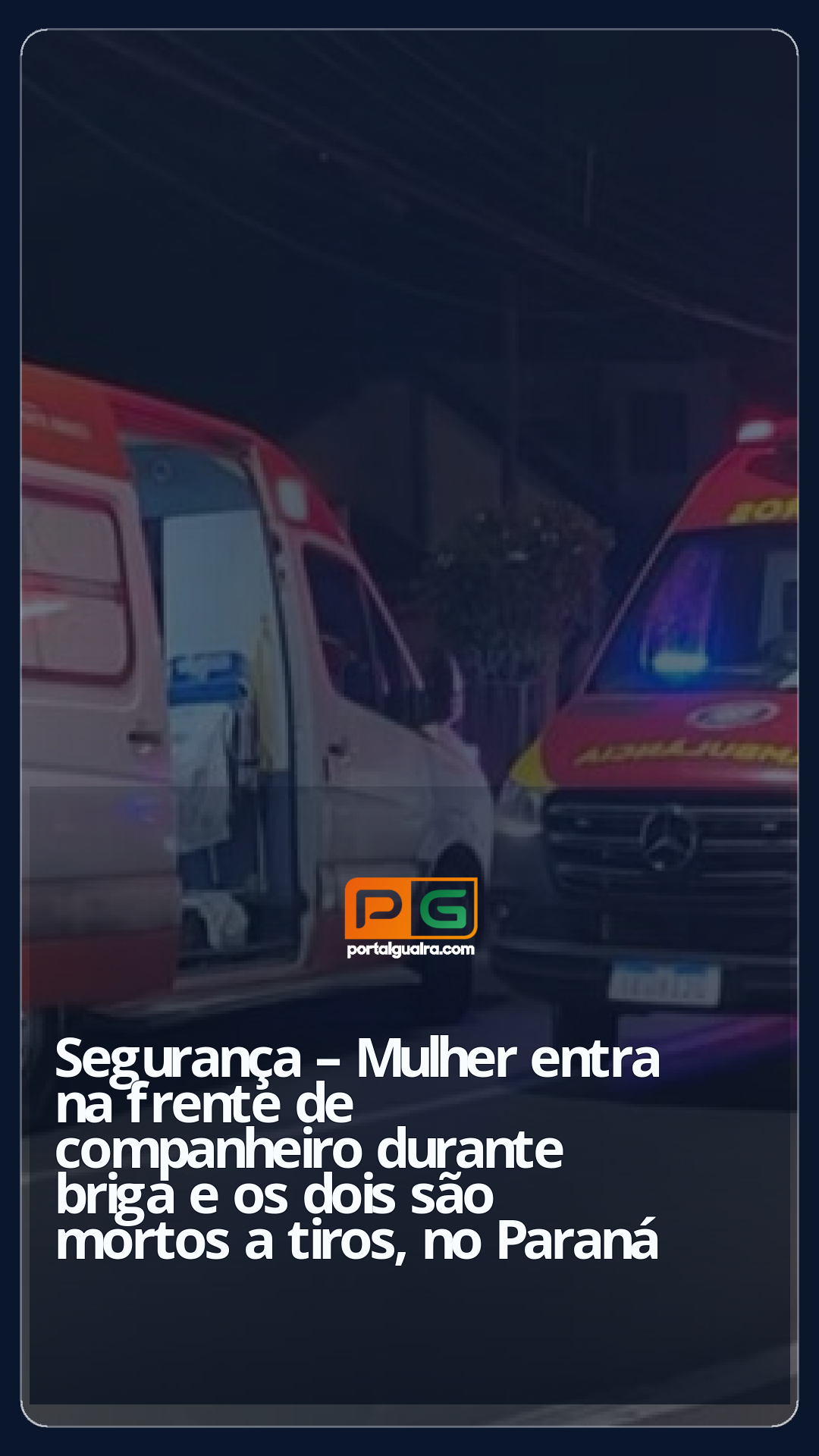 Um casal foi morto a tiros em Londrina, no norte do Paraná, na madrugada de sábado (27). As vítimas foram identificadas pela Polícia Militar (PM-PR) como Luiz Henrique Hidalgo da Silva, de 28 anos, e Cassiane Candida Ultramar, de 26. Testemunhas contaram à PM que Cassiane entrou na frente de Luiz para defendê-lo, durante uma briga perto de um bar, e os dois foram baleados.