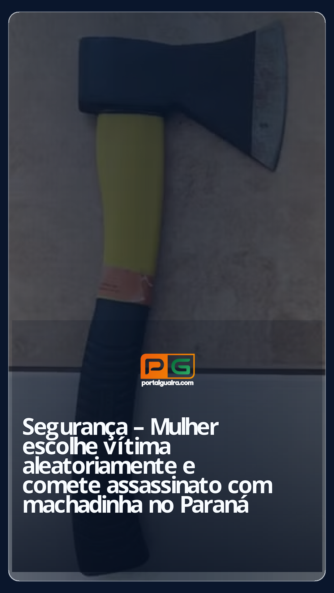 Uma mulher de 20 anos foi presa após matar um homem, de 45, com golpes de machadinha, em Paranavaí, no noroeste do Paraná. A investigação da Polícia Civil (PC-PR) mostrou que ela escolheu uma vítima aleatoriamente para cometer o crime.