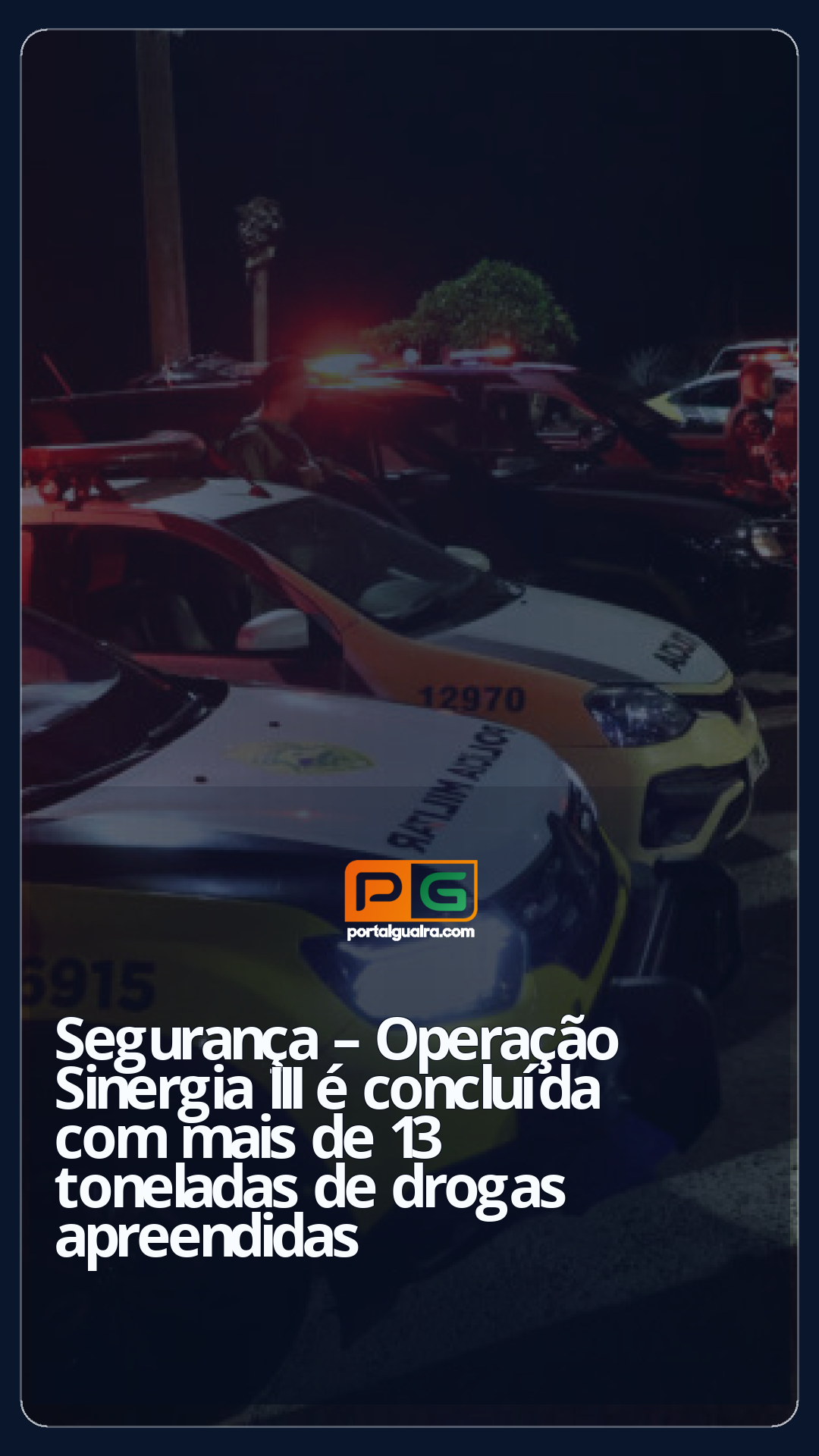 A Operação Sinergia III, coordenada pela Secretaria da Segurança Pública do Paraná (SESP), foi concluída na sexta-feira (19) com 13,1 toneladas de drogas retiradas de circulação, 519 pessoas presas em flagrante e 149 veículos apreendidos. Deflagrada na segunda-feira (15), a ação integrada das cinco forças de segurança do estado ocorreu simultaneamente nos 399 municípios paranaenses.