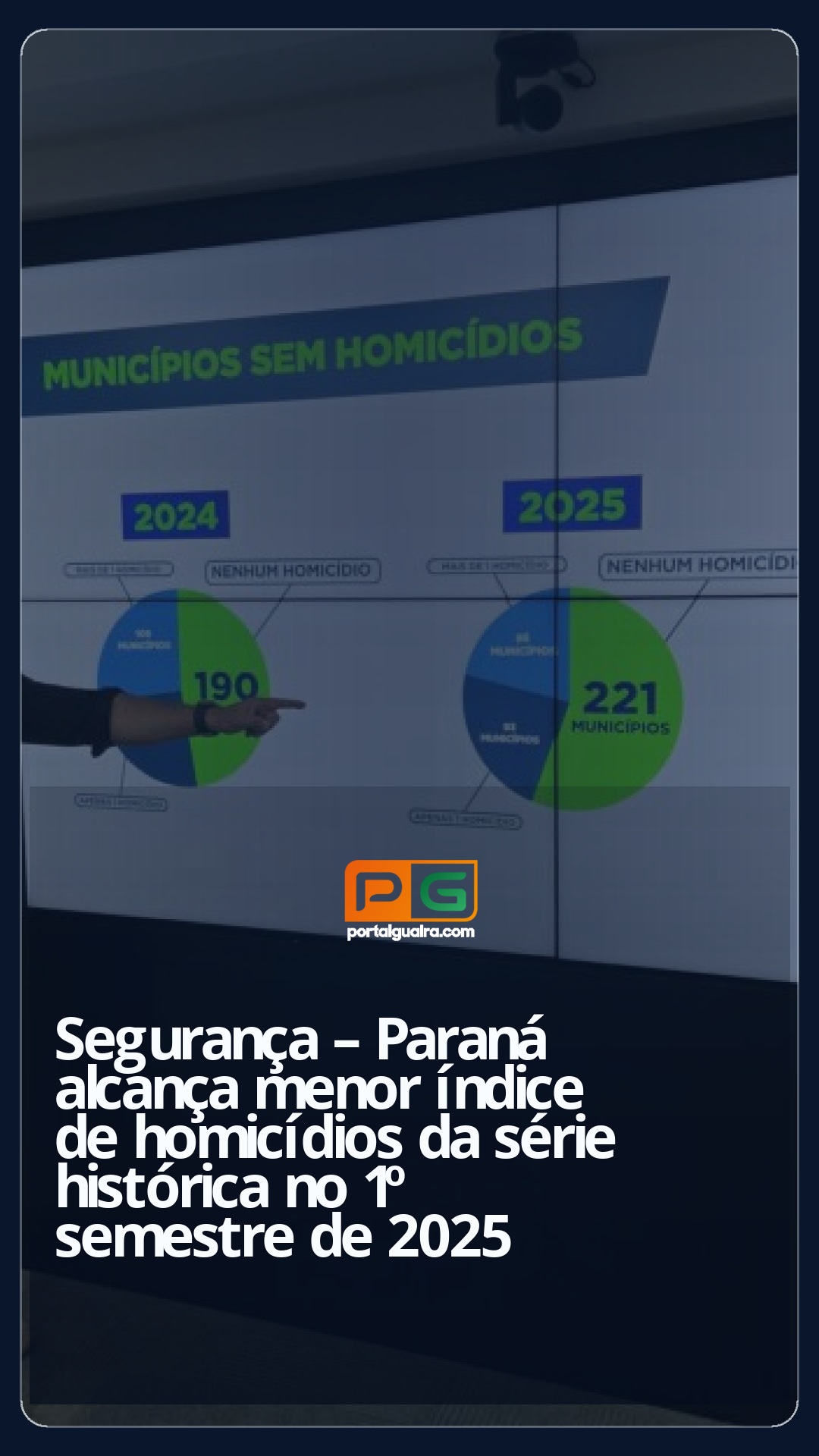 55% DAS CIDADES SEM HOMICÍDIOS – A melhora nos índices de violência letal também se reflete no aumento do número de municípios paranaenses sem homicídios dolosos. No primeiro semestre de 2024, eram 192 cidades sem registro desse tipo de crime. Em 2025, o número subiu para 221, o que representa 55% dos municípios do Paraná. Em outras 93 cidades (23%) só houve um caso registrado.