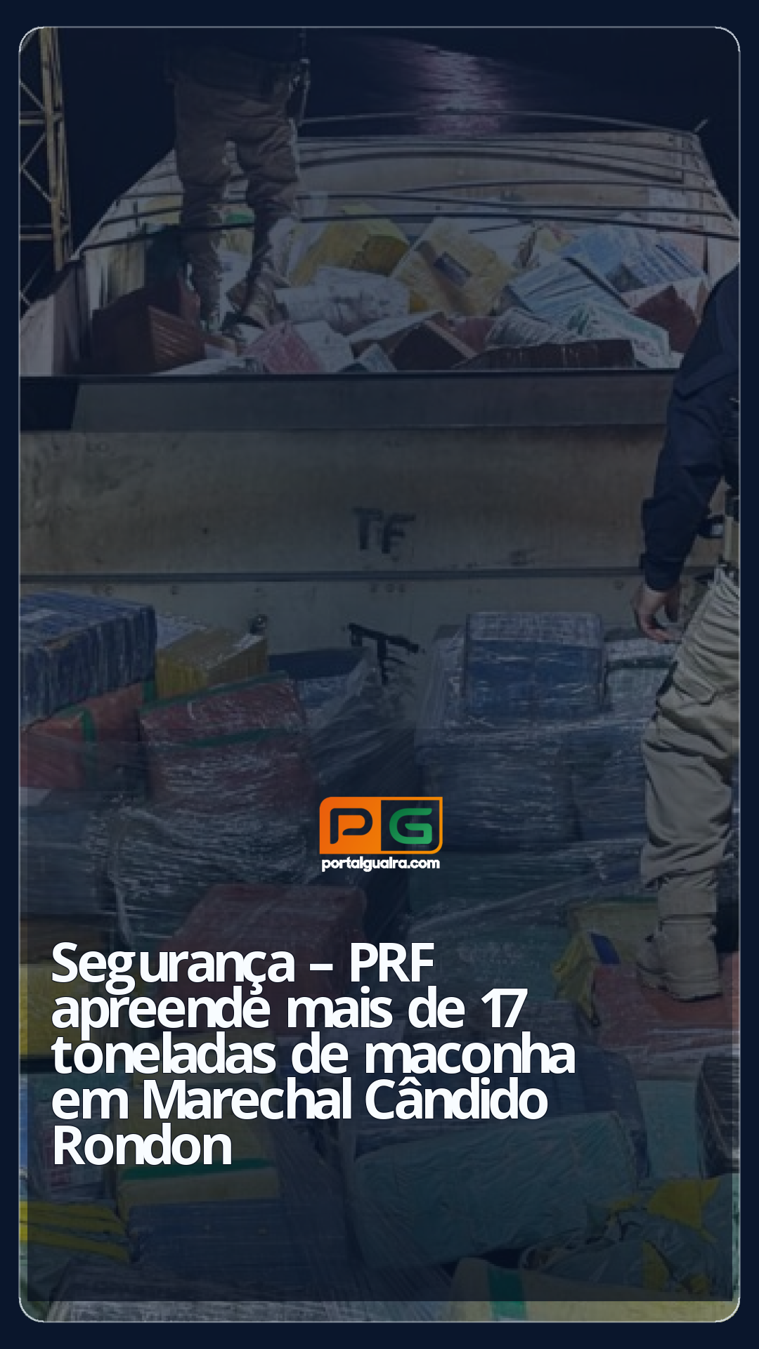 A Polícia Rodoviária Federal (PRF) apreendeu na tarde desta quinta-feira (26), na BR 163 em Marechal Cândido Rondon, região oeste do Paraná, uma carga de 17.220 quilos de maconha e 10,5 quilos de skunk.