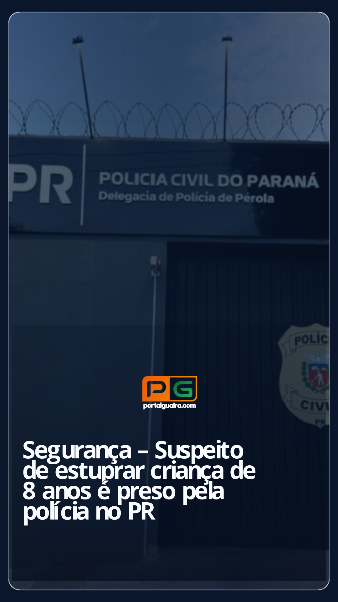 A Polícia Civil do Paraná prendeu na manhã de quinta-feira (6) um homem de 32 anos suspeito pelo estupro de criança de 8 anos, em Pérola, no noroeste do Estado. É da Vara Criminal da comarca da cidade que foi expedido o mandado de prisão preventiva contra o homem.