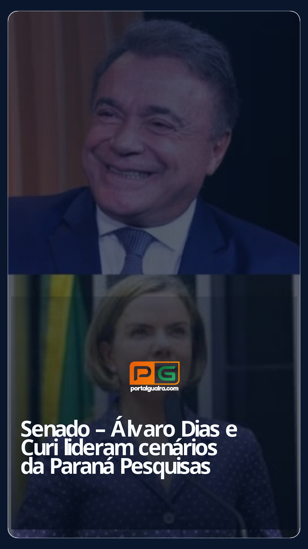 No primeiro cenário apresentado, Álvaro Dias tem 49,6% das intenções de votos, Alexandre Curi 33,7%, Gleisi Hoffmann 24,1%, Filipe Barros 23,7% e Cristina Graeml 23,1%. Não sabe ou não opinou representam 5,5% e nenhum, branco ou nulo 9,4%.