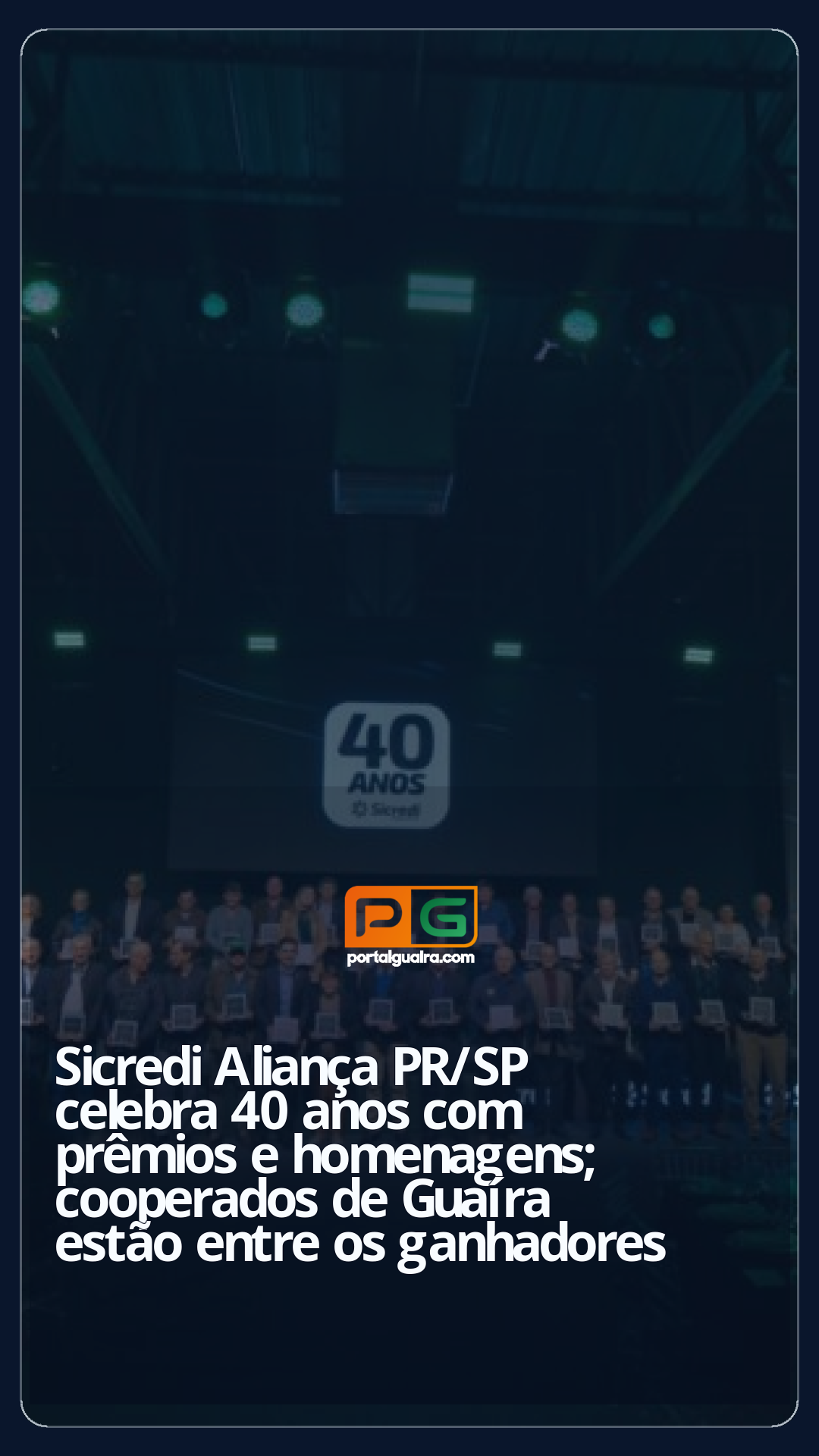 A Sicredi Aliança PR/SP comemorou no domingo (6) seus 40 anos de atuação, em um evento marcado por homenagens, emoção e a entrega de prêmios da maior campanha já realizada pela cooperativa: “40 anos de 40 Prêmios para Você!”. Foram distribuídos mais de R$ 1,5 milhão em prêmios ao longo de um ano, incluindo carros, celulares e televisores.