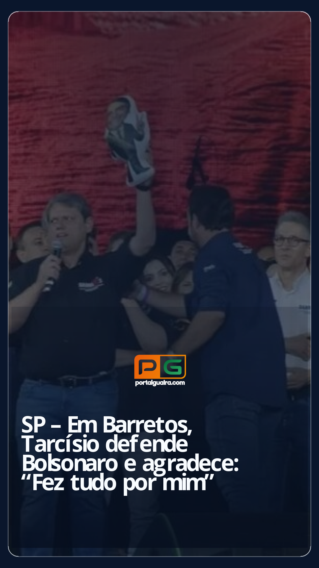 “Com essa pessoa que fez tudo por mim, que me abriu portas e que está passando por uma grande injustiça”, falou em referência ao processo enfrentando por Jair Bolsonaro no STF (Supremo Tribunal Federal), por suposta participação e articulação de um plano de golpe de Estado.