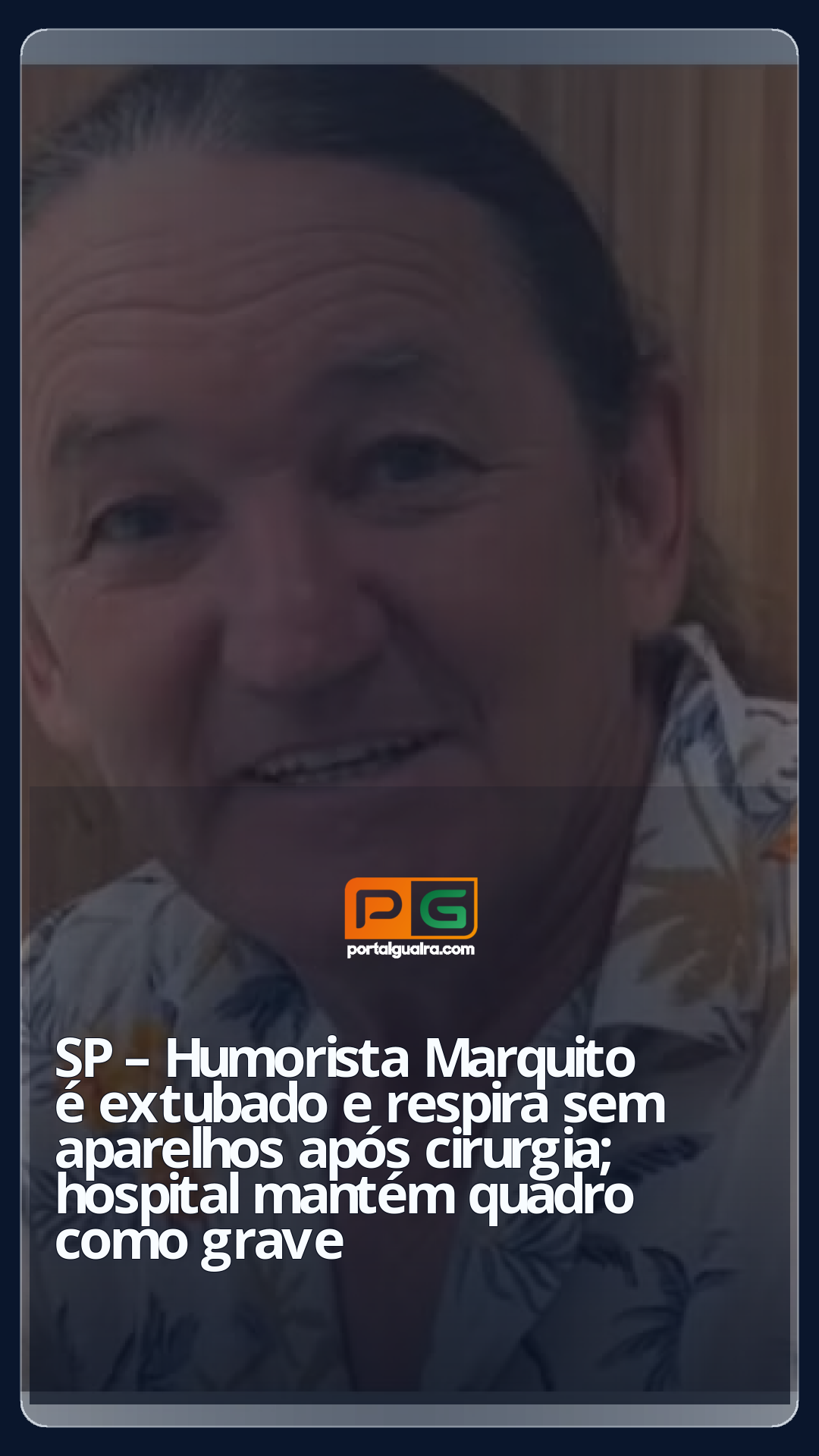 O humorista Marco Antonio Ricciardelli, conhecido como Marquito, foi extubado e respira espontaneamente, sem ajuda de aparelhos, segundo boletim divulgado neste domingo (1º) pelo Hospital Nipo-Brasileiro e enviado ao g1 pela assessoria de imprensa do SBT.