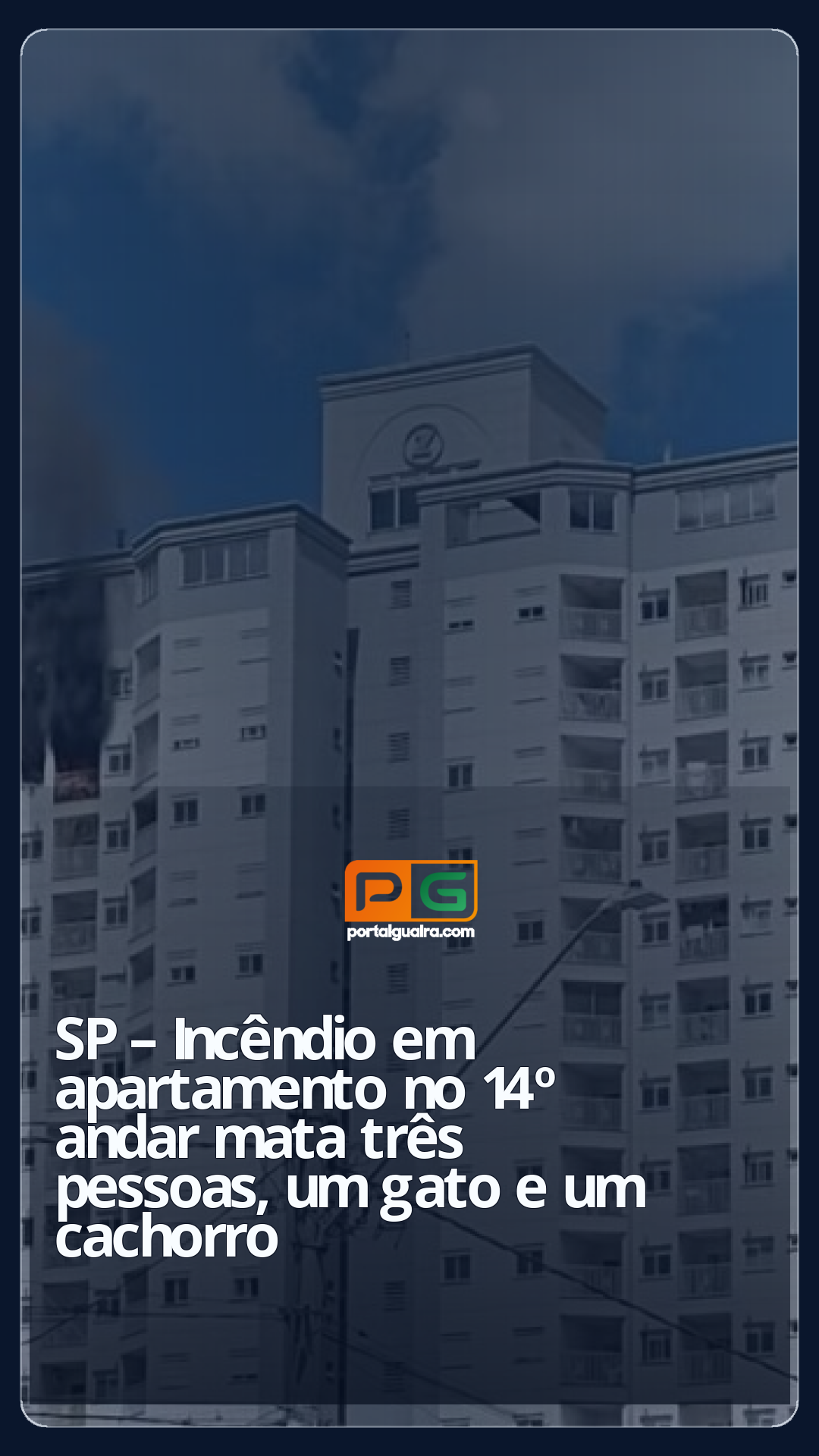 Três pessoas, um gato e um cachorro morreram em um incêndio que atingiu um apartamento no 14º andar de um prédio, na manhã de domingo (21), em Piracicaba (SP).