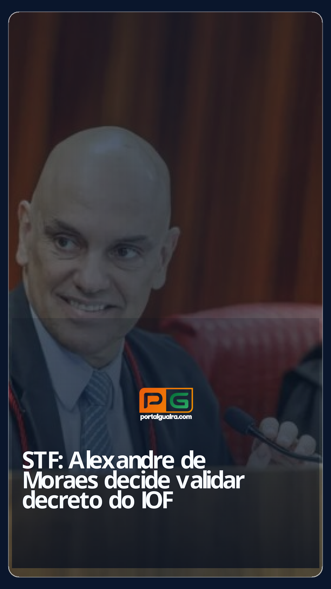 O ministro Alexandre de Moraes, do Supremo Tribunal Federal (STF), decidiu na quarta-feira (16) manter a validade do decreto editado pelo presidente Luiz Inácio Lula da Silva para aumentar as alíquotas do Imposto sobre Operações Financeiras (IOF).