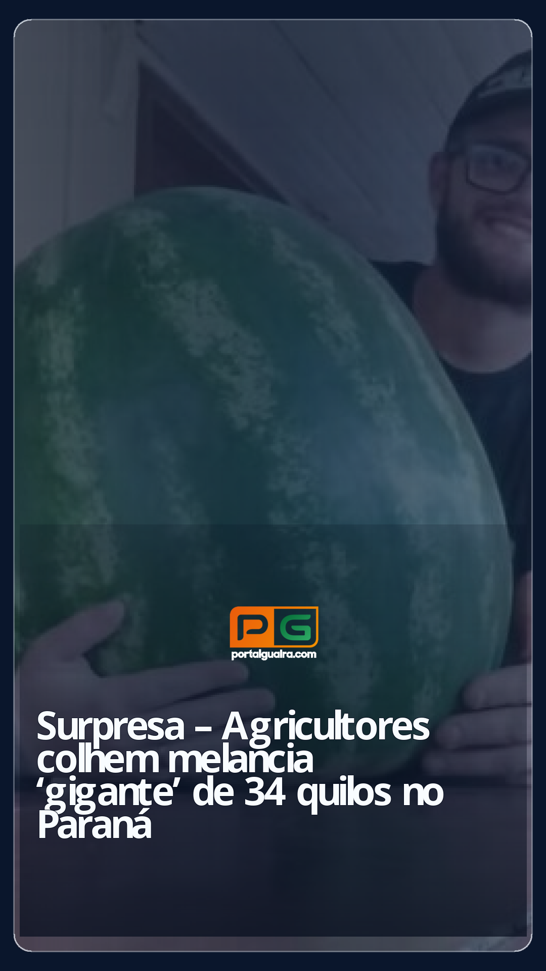 Um jovem casal de Francisco Beltrão, no sudoeste do Paraná, foi surpreendido na colheita da primeira safra destinada às vendas: na propriedades deles, nasceu uma melancia gigante de 34 quilos.