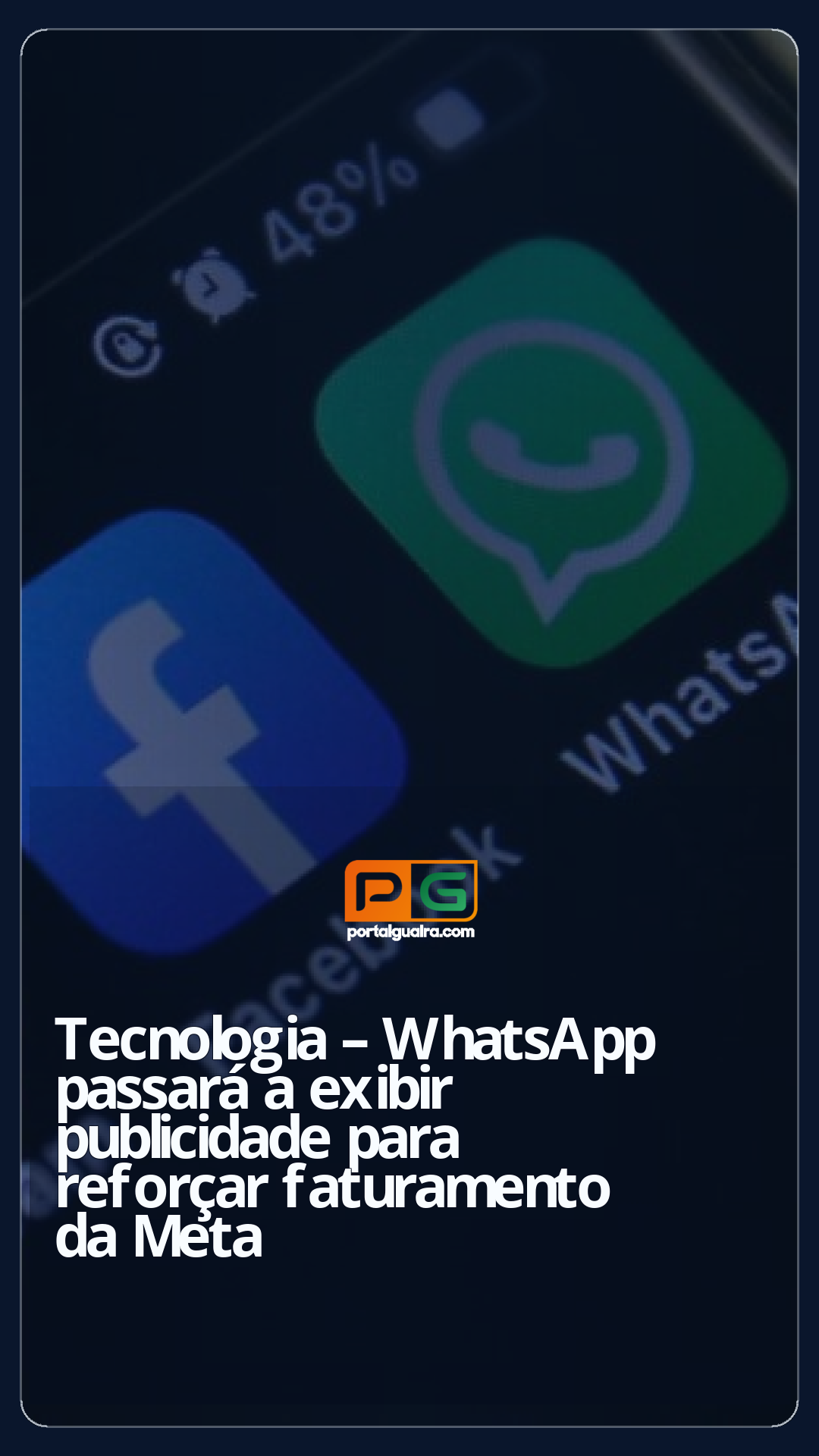 O WhatsApp passará a exibir propaganda. O anúncio foi feito pela Meta, dona do aplicativo, e marca uma mudança profunda na maneira com que a empresa pretende gerar receitas com o aplicativo de mensagem mais popular no Brasil.