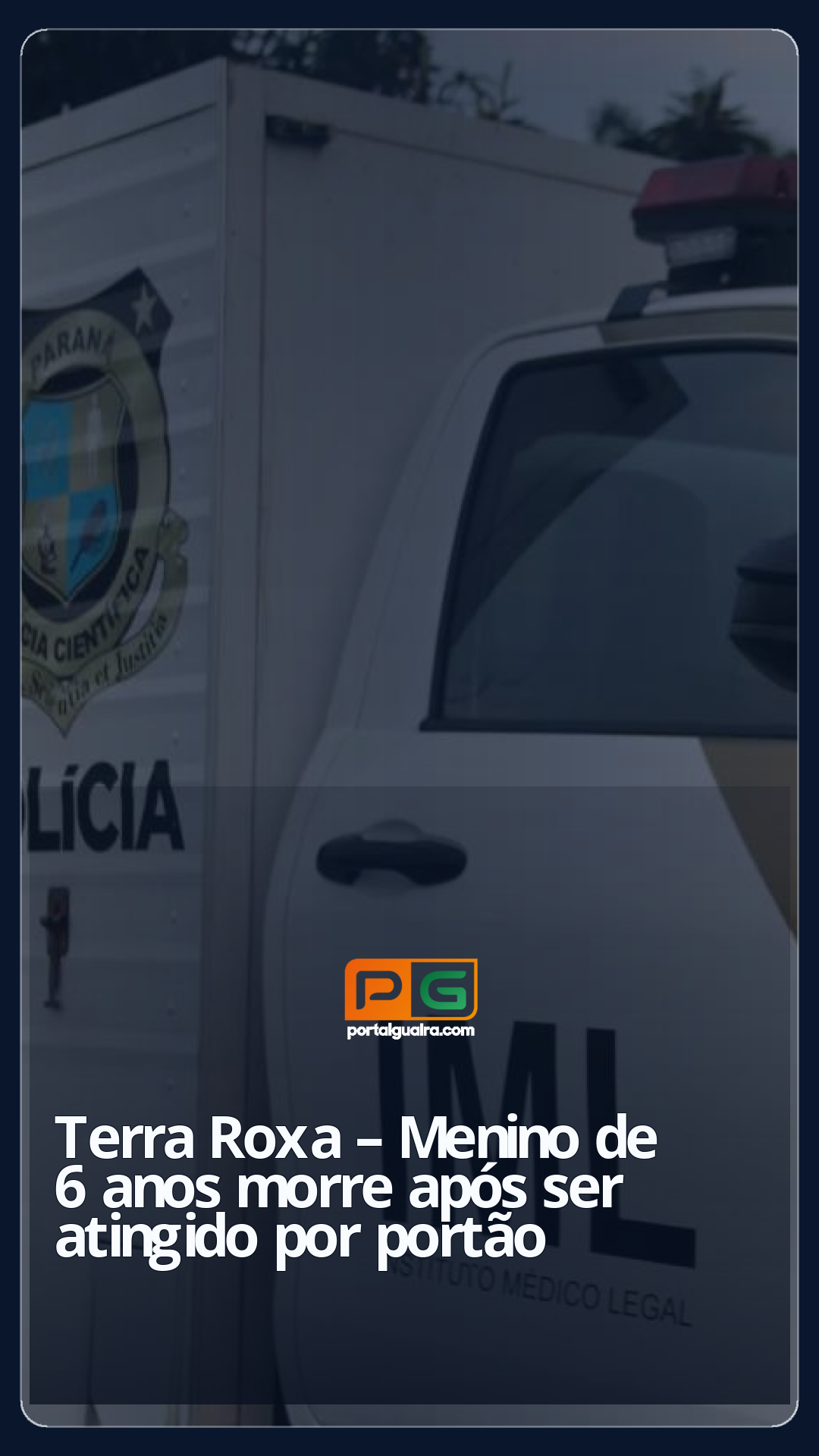 Um menino, de 6 anos, morreu após ser atingido pelo portão de casa, na tarde de sexta-feira (12), em Terra Roxa, Oeste do Paraná.