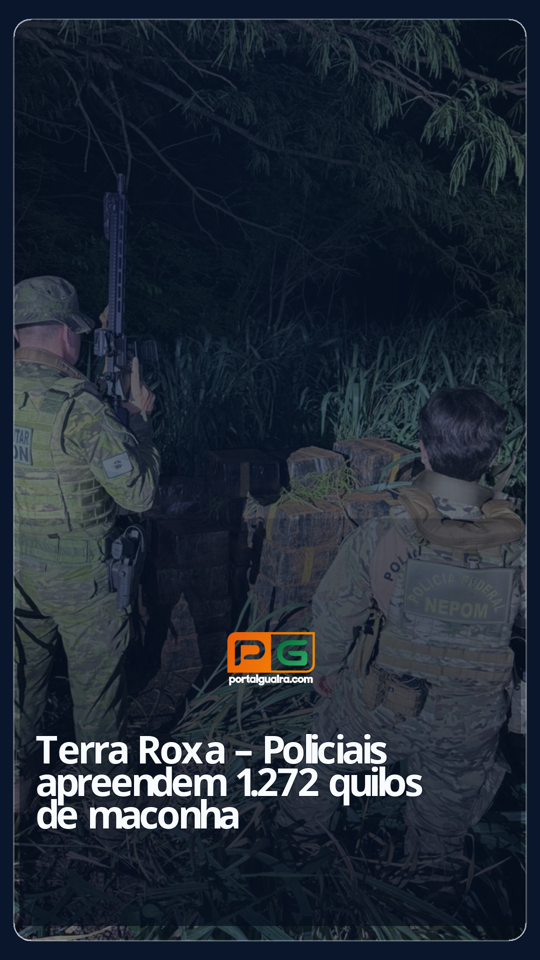 Na madrugada de sexta-feira (12), durante patrulhamento na zona rural, no âmbito da Operação Protetor, policiais federais do NEPOM/PF e policiais militares do BPFRON/PMPR localizaram e apreenderam um grande carregamento de 1.272 quilos de maconha em uma área de mata fechada da região.