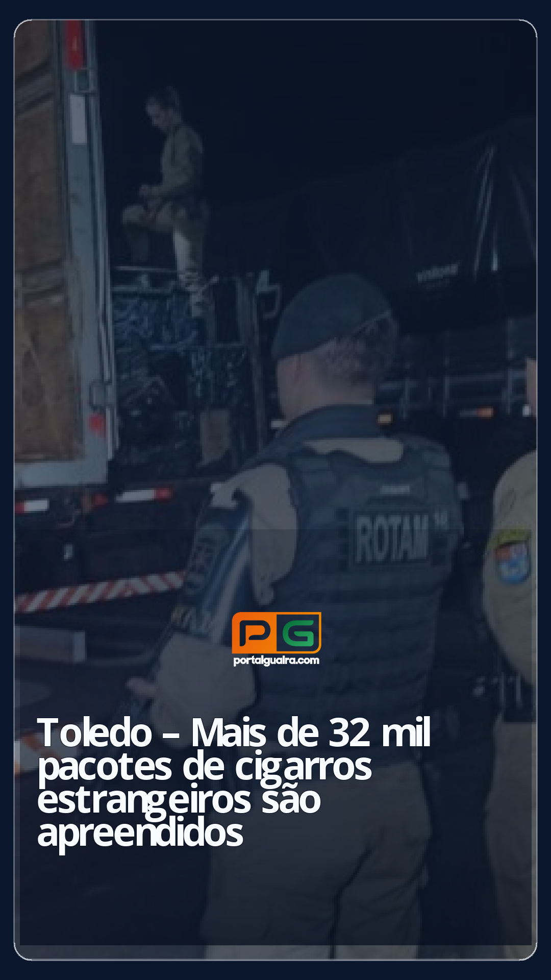 Três caminhões foram apreendidos em propriedade rural de Toledo, na noite de terça-feira (13). Dois deles estavam carregados com cerca de 650 caixas de cigarros estrangeiros – o equivalente a 32.500 pacotes.