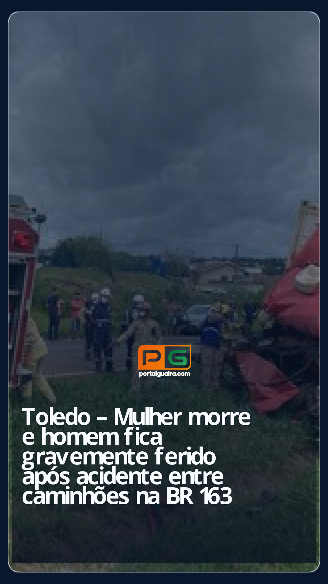 Uma mulher morreu e um homem ficou gravemente ferido em uma batida traseira entre caminhões, na BR-163 em Toledo. O caso foi registrado na manhã de quinta-feira (06).