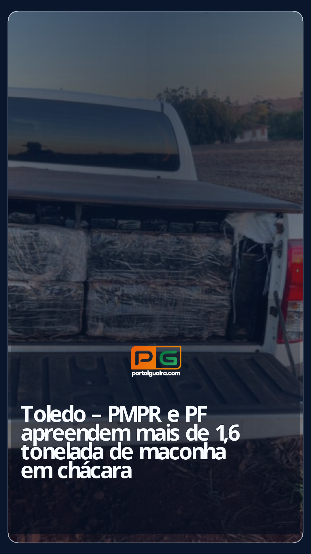 A Polícia Militar do Paraná (PMPR), em ação conjunta com a Polícia Federal (PF), apreendeu na quinta-feira (11) mais de 1,6 tonelada de maconha em uma chácara no município de Nova Santa Rosa, no Oeste. Um homem foi preso em flagrante durante a operação.