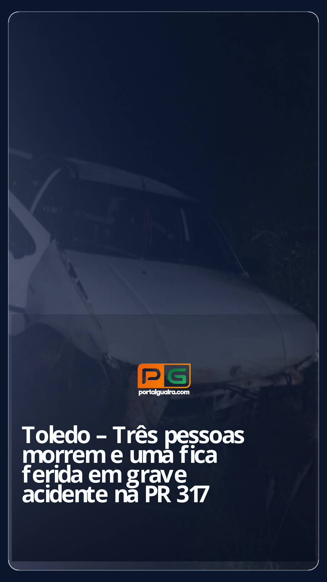 Um grave acidente registrado na noite de sábado (29) resultou em três mortes e uma pessoa ferida na PR-317, no trecho entre Bragantina e Toledo. O sinistro ocorreu por volta das 23h, no km 370 da rodovia.