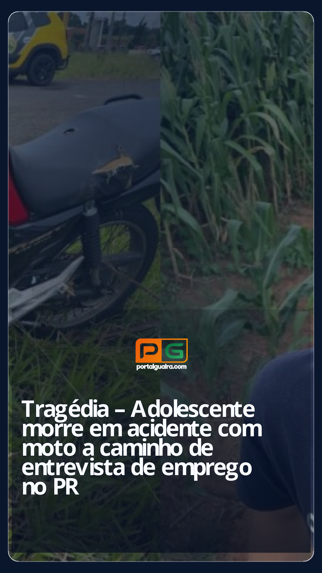 Um adolescente de 15 anos morreu em um acidente de moto a caminho de uma entrevista de emprego na BR-153, em Ibaiti, no Norte do Paraná, na segunda-feira (12). Ele foi identificado como Victor Hugo da Silva. A vítima era passageira da motocicleta e quem pilotava o veículo era um jovem de 20 anos.