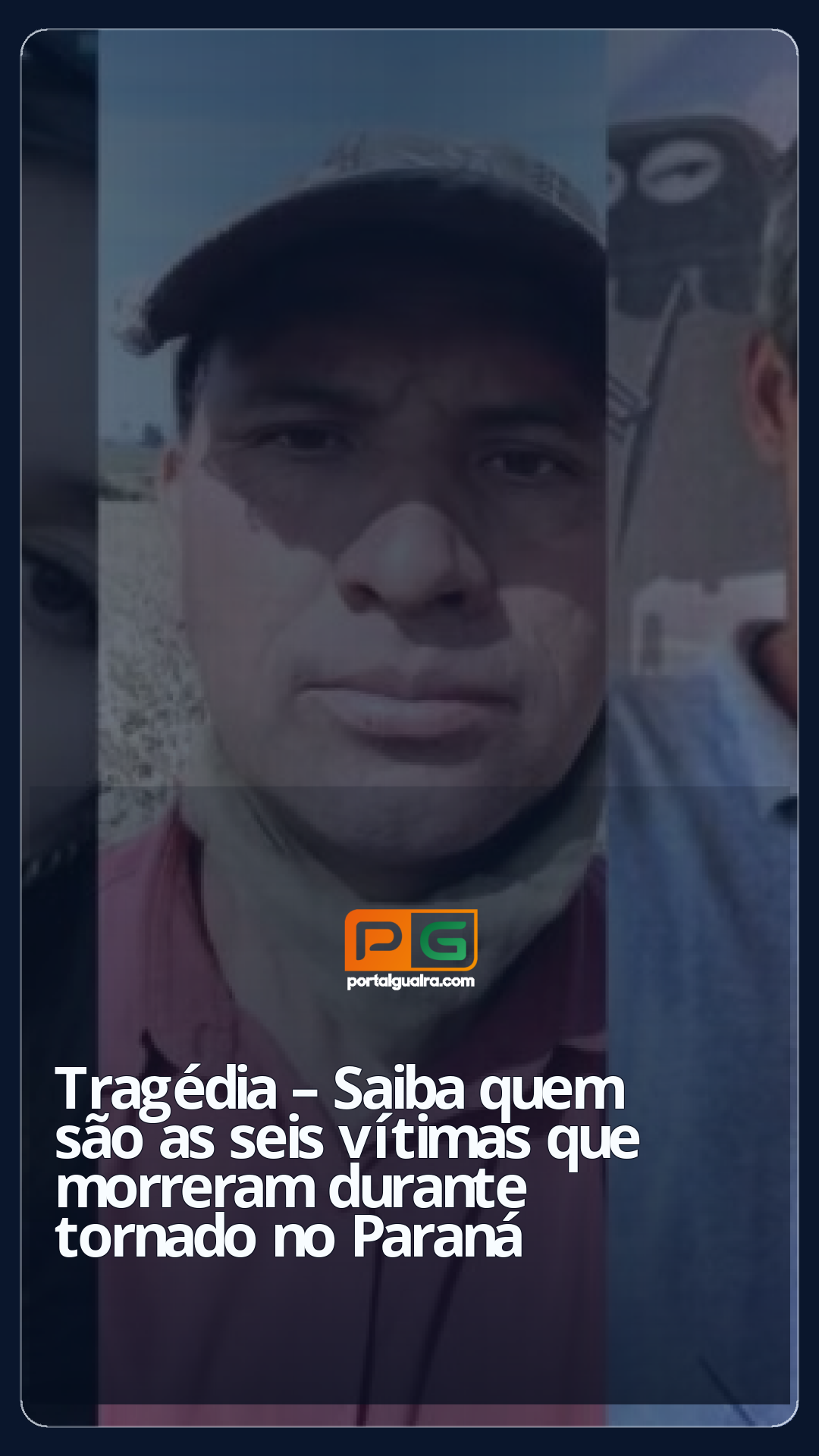 O Governo do Paraná confirmou, na tarde de sábado (8), os nomes das seis vítimas que morreram durante a passagem do tornado classificado como EF3 pelo Paraná, na sexta-feira (7). Veja abaixo:
