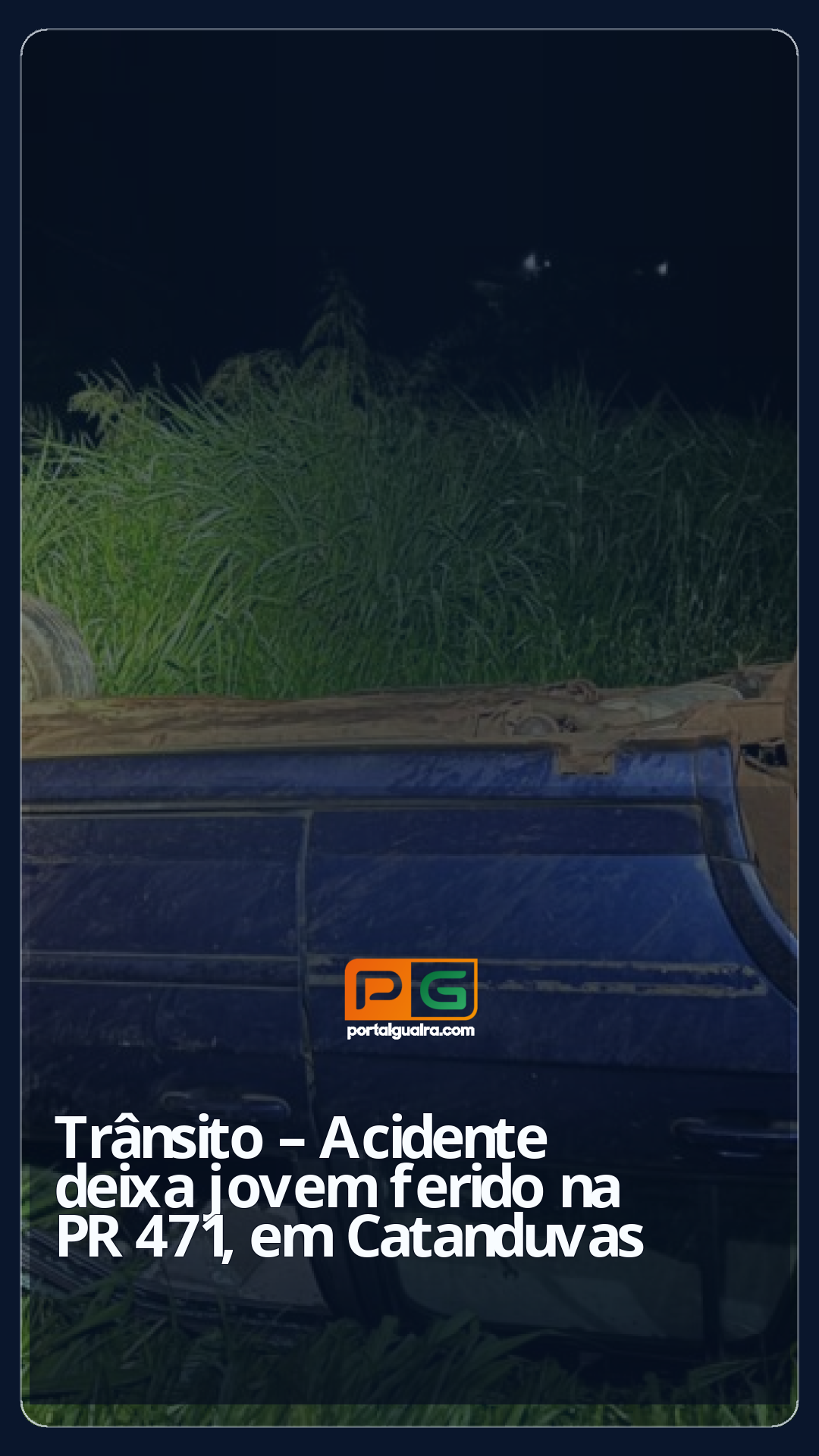 Um acidente de trânsito registrado na madrugada de quinta-feira (20) deixou um jovem ferido na PR-471, no trecho que liga o acesso da BR-277 a Catanduvas. O sinistro ocorreu por volta de meia-noite, sendo comunicado à Polícia Rodoviária Estadual cerca de 40 minutos depois.