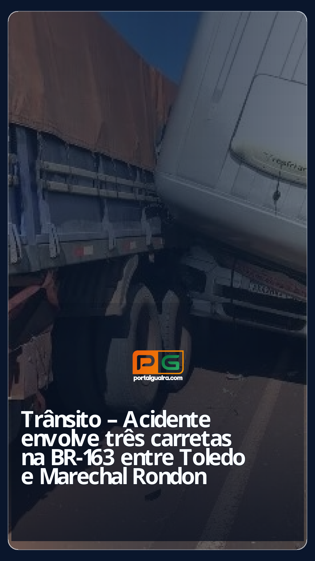 Um engavetamento envolvendo três carretas foi registrado na tarde desta quarta-feira (04), na BR-163, no trecho entre Toledo e Marechal Cândido Rondon, nas proximidades do entreposto da Coamo do distrito de Dois Irmãos.