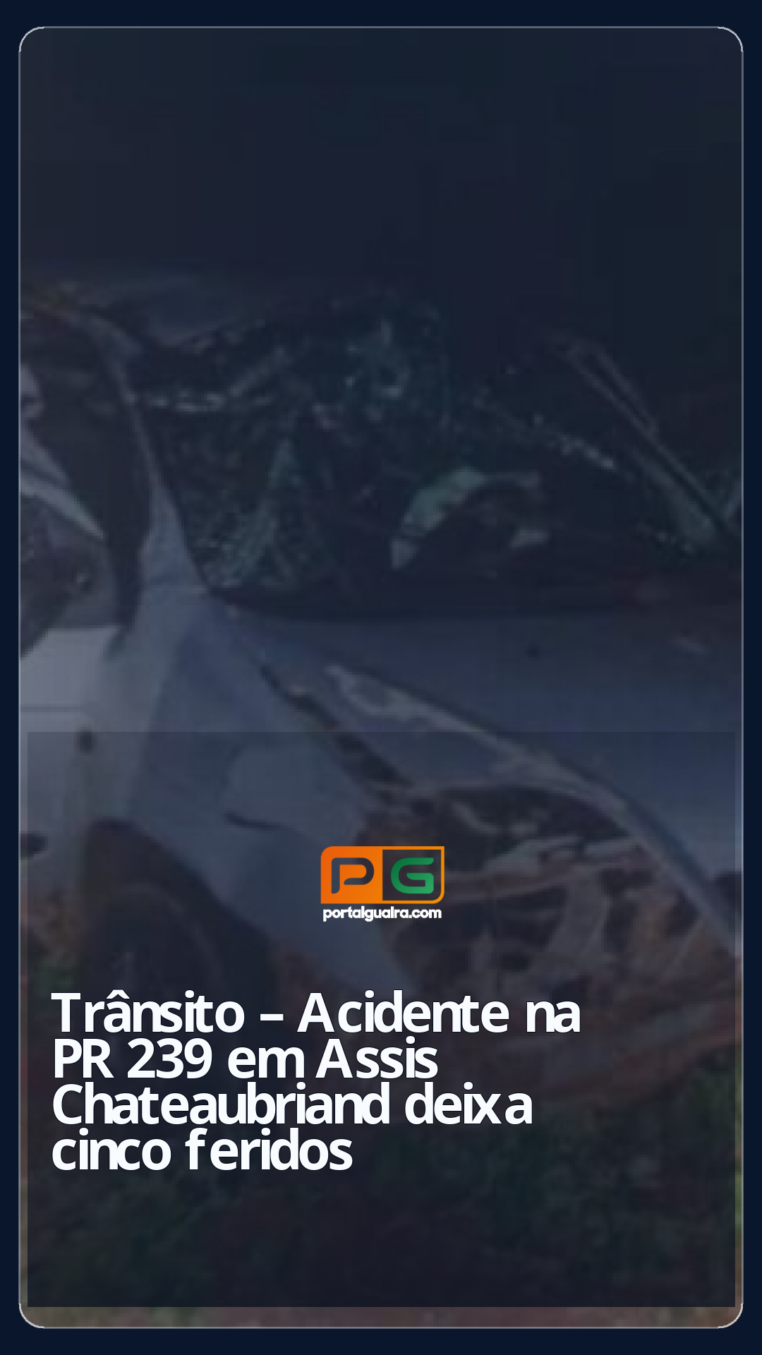Cinco pessoas ficaram feridas, entre elas três crianças, em acidente na PR-239 em Assis Chateaubriand, na noite de sábado (20).
