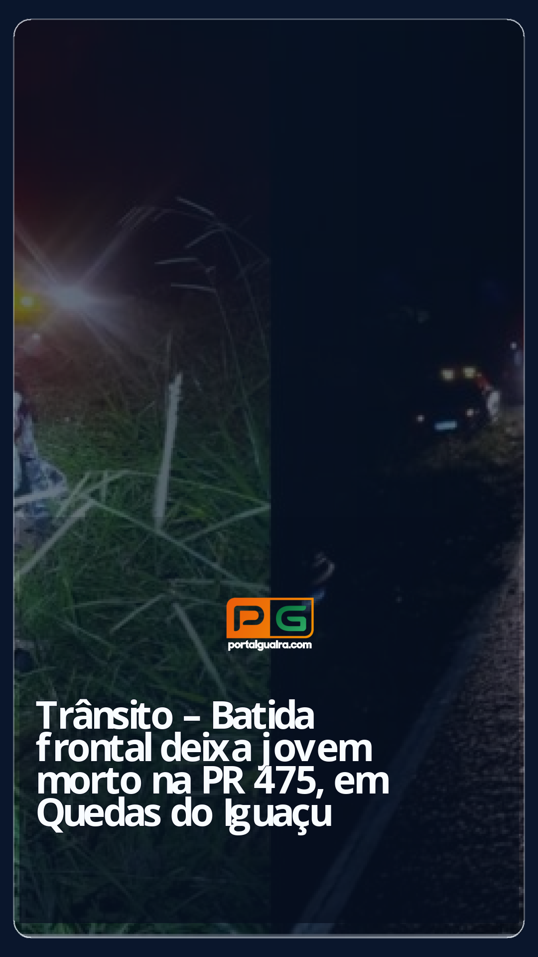 Um jovem de 25 anos morreu em grave acidente de trânsito registrado na PR-475 em Quedas do Iguaçu, no Centro-Sul do Paraná, no início da noite de quinta-feira (26).