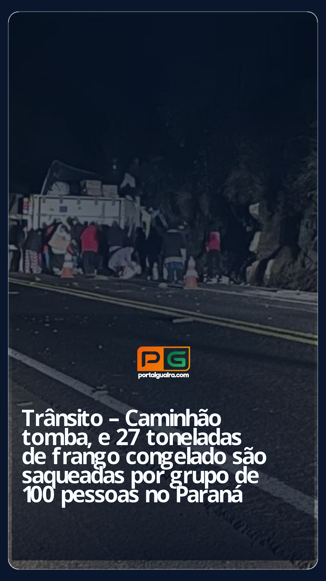 Toda a carga de 27 toneladas de frango congelado foi saqueada de um caminhão que tombou na tarde de quinta-feira (3) na BR-277 em Laranjeiras do Sul, na região central do Paraná. Parte da ação foi filmada pela Polícia Rodoviária Federal (PRF).