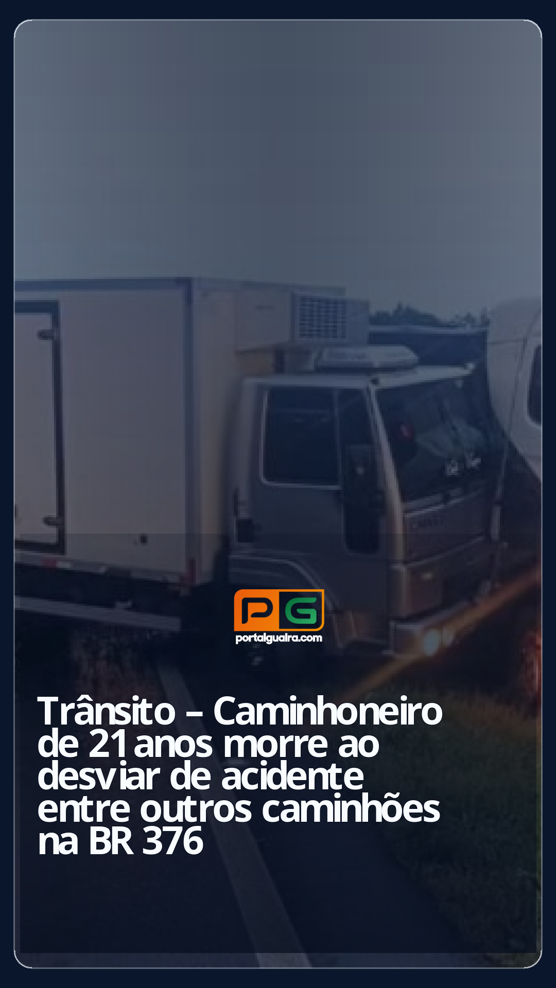 Um motorista de 21 anos morreu ao desviar de um acidente entre dois caminhões no fim da tarde de domingo (24) na BR-376 em Ponta Grossa, nos Campos Gerais do Paraná. As informações são da Polícia Rodoviária Federal (PRF).