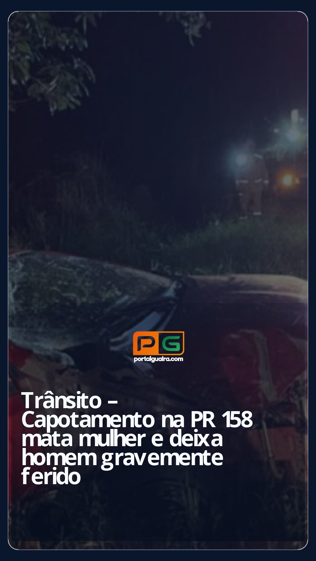 Acidente de trânsito registrado na madrugada desta quinta-feira (20) na PR-158, em Vitorino (PR), sentido a São Lourenço (SC), causou a morte de uma mulher.