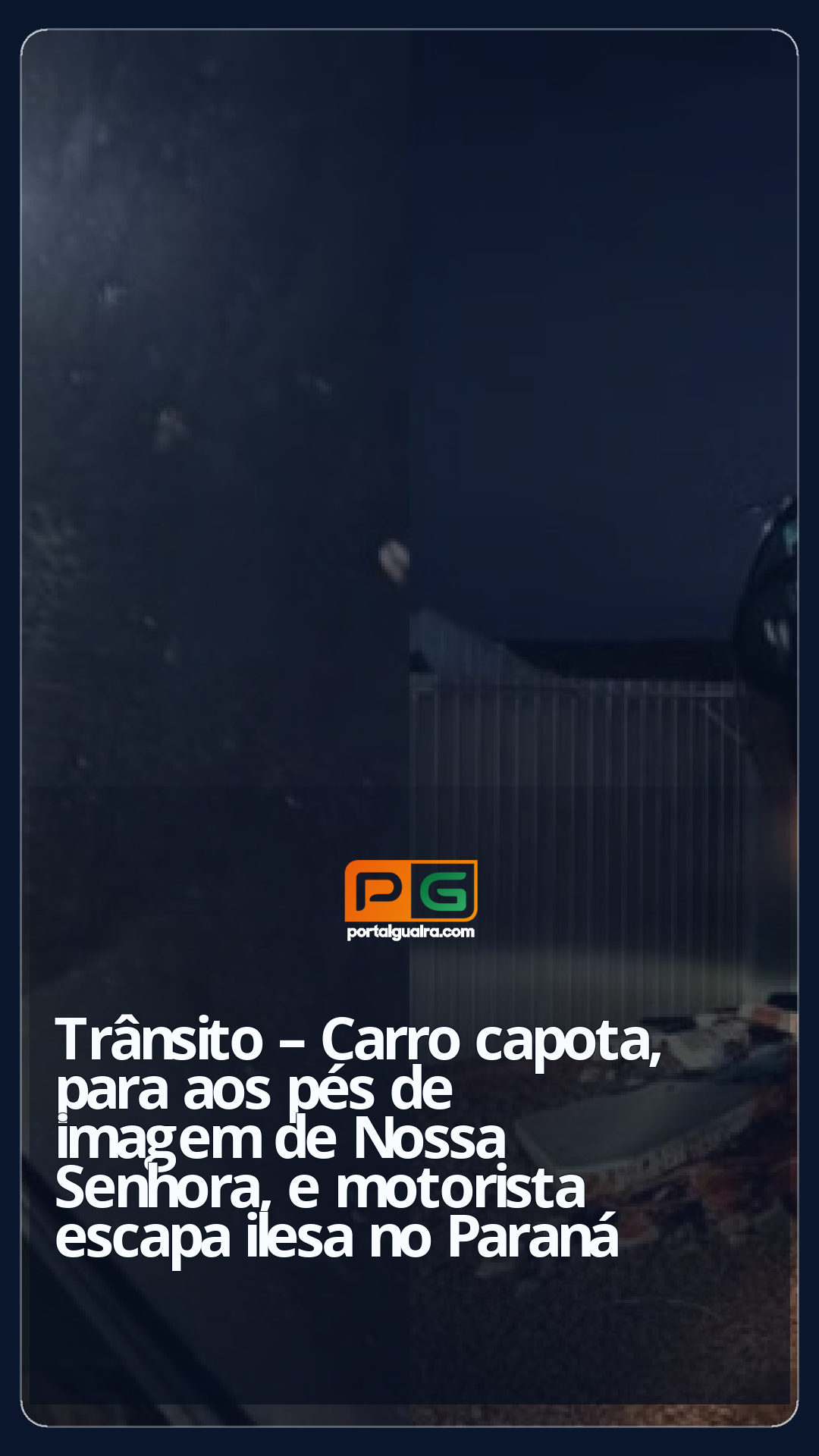 Uma vereadora de Formosa do Oeste, no oeste do Paraná, saiu ilesa após sofrer um acidente na madrugada de sábado (6). O carro que ela dirigia capotou e parou apoiado aos pés de uma imagem de Nossa Senhora Aparecida, instalada às margens da rodovia.