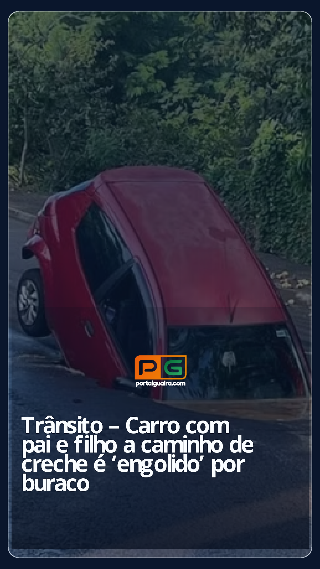 Pai e filho sofreram um acidente em Jaguapitã, no norte do Paraná, quando estavam a caminho da creche, na sexta-feira (21). O carro em que os dois estavam foi “engolido” por um buraco que abriu na Rua Hugo Silva Pereira no momento em que passavam.