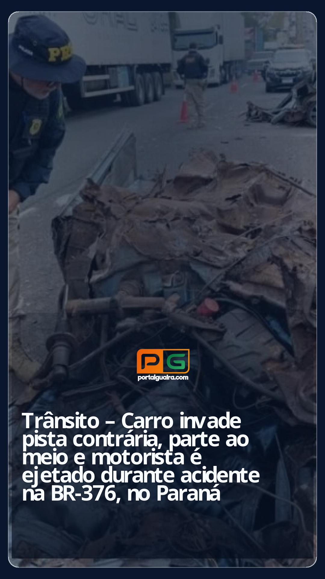 Um acidente envolvendo três veículos e quatro vítimas foi registrado na quinta-feira (28), na BR-376, entre Sarandi e Marialva, no norte do Paraná. Um dos carros invadiu a pista contrária, partiu ao meio e o motorista foi ejetado.