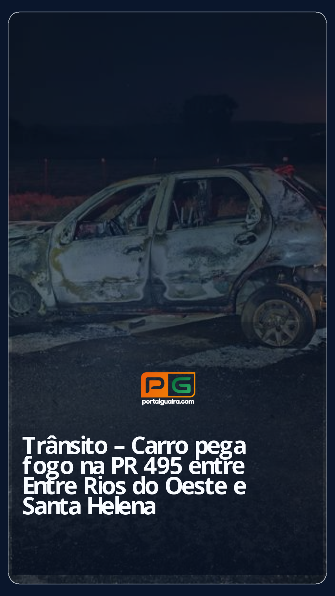 Um Fiat Palio pegou fogo no início da noite de quinta-feira (17) na PR-495, entre Entre Rios do Oeste e Santa Helena. O incidente foi registrado por volta das 18h, no km 109+900 da rodovia estadual.