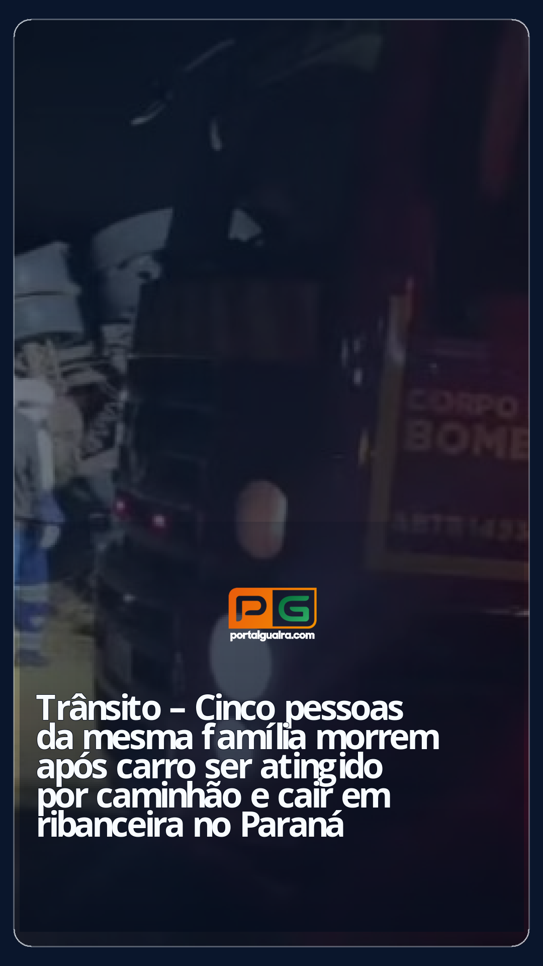Cinco pessoas das mesma família morreram, entre elas duas crianças, após um carro ser atingido por um caminhão carregado e cair em uma ribanceira na PR-158, entre Pato Branco e Vitorino, no sudoeste do Paraná. O acidente aconteceu na madrugada desta sexta-feira (18).